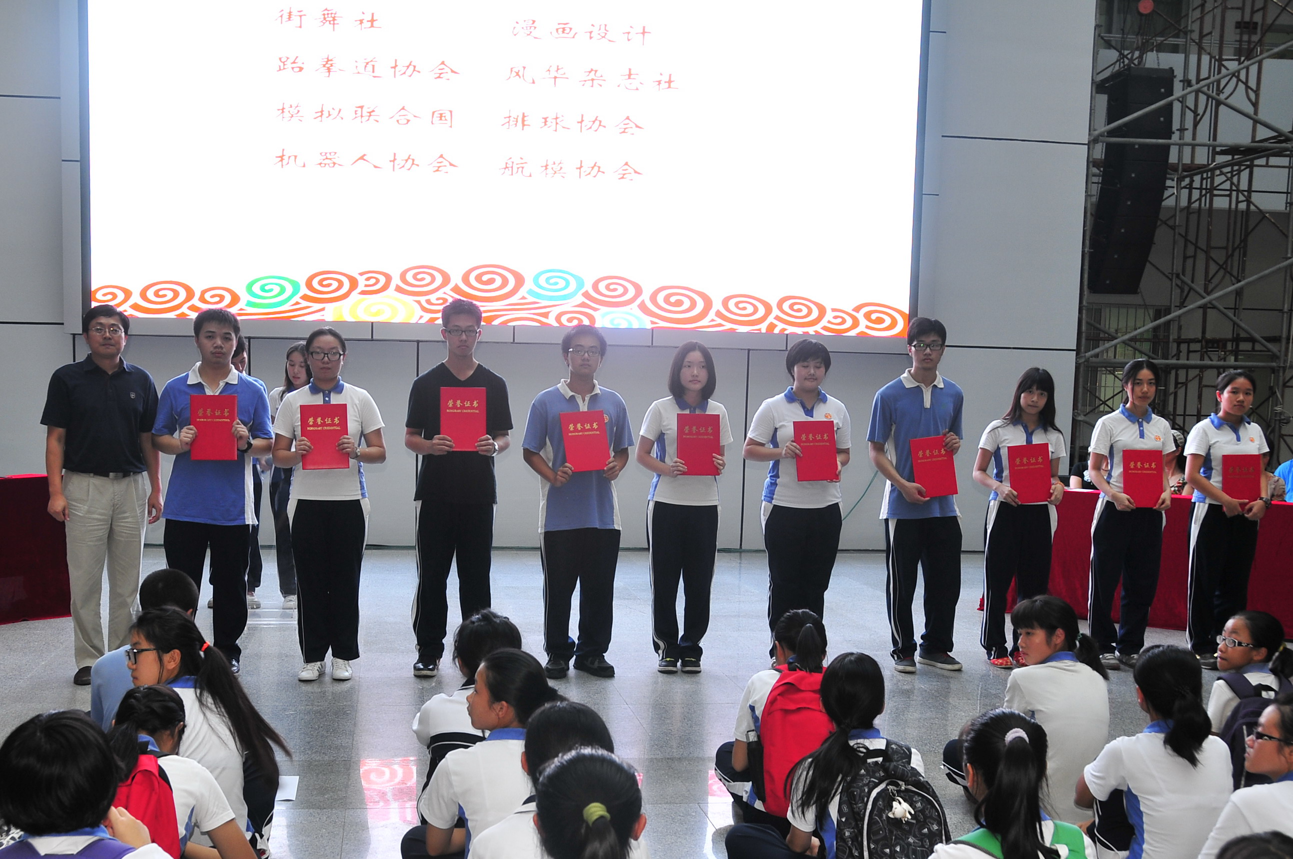 在高中部的社团表彰大会上,校园电视台、广播站、街舞社、漫画设计社、跆拳道协会、《风华》杂志社、模拟联合国、排球协会、机器人协会和航模协会获评“十大魅力社团”,张睿、颜葆菁、郭旋、倪英添、程林婧雅、王芷萱、黄汉林、叶大民、程瑜和翁淮乾等同学被评为“十佳社团领袖”,赵振囡等十位老师被评为“十佳社团指导老师”,刘达峰等81位同学获得“社团之星”光荣称号。赵立校长、郑联采副校长、李雅萍副校长和多位处室领导出席大会并提出了对同学们通过社团活动提升自我的的殷切期望。