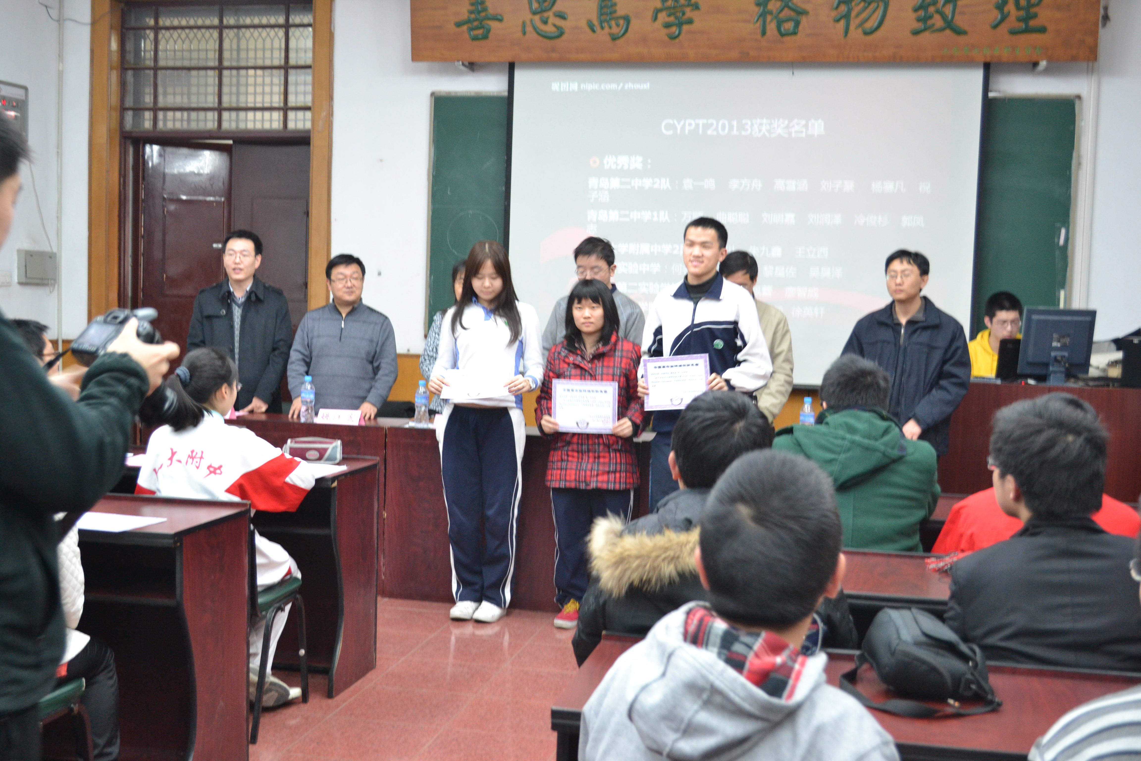 2月26日,为期一周的第26届国际青年物理学家竞赛(IYPT)中国队选拔赛(CYPT)在南开大学物理学院落下帷幕,经过笔试、英语面试、学术面试、五轮现场对抗赛等激烈角逐,我校学生再奏凯歌。继2012年倪英添同学入选第25届IYPT国家队并荣任队长之后,今年我校学生又有非凡表现:高二年级叶美琪同学入选第26届IYPT国家队,于佩蕾、廖智威两位同学获得优秀奖。
