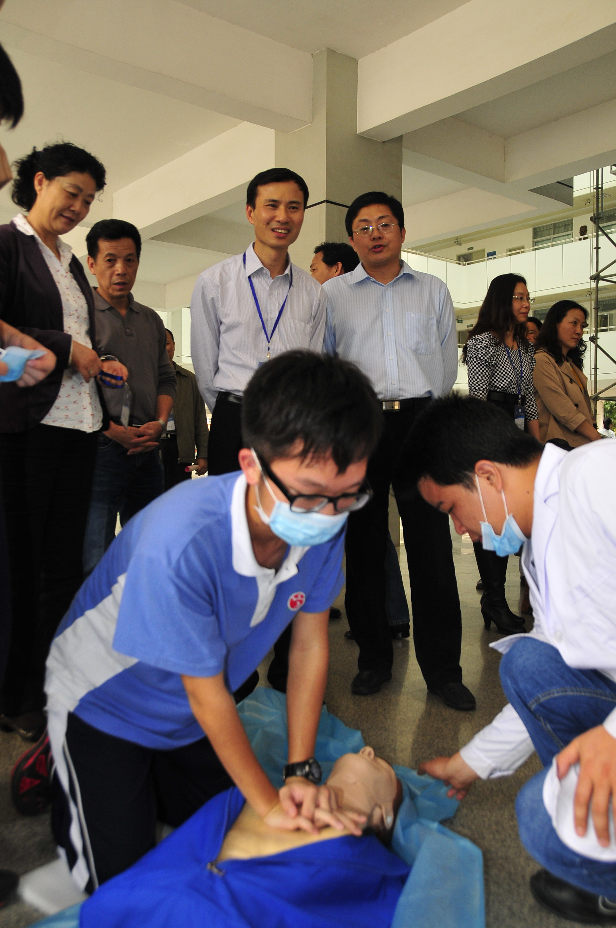 会前,参会领导还在我校赵立校长、何世盛副校长的陪同下,观摩了高一学生正在进行的急救技能训练活动,参观了学生宿舍、学校食堂等安全规范管理现场。