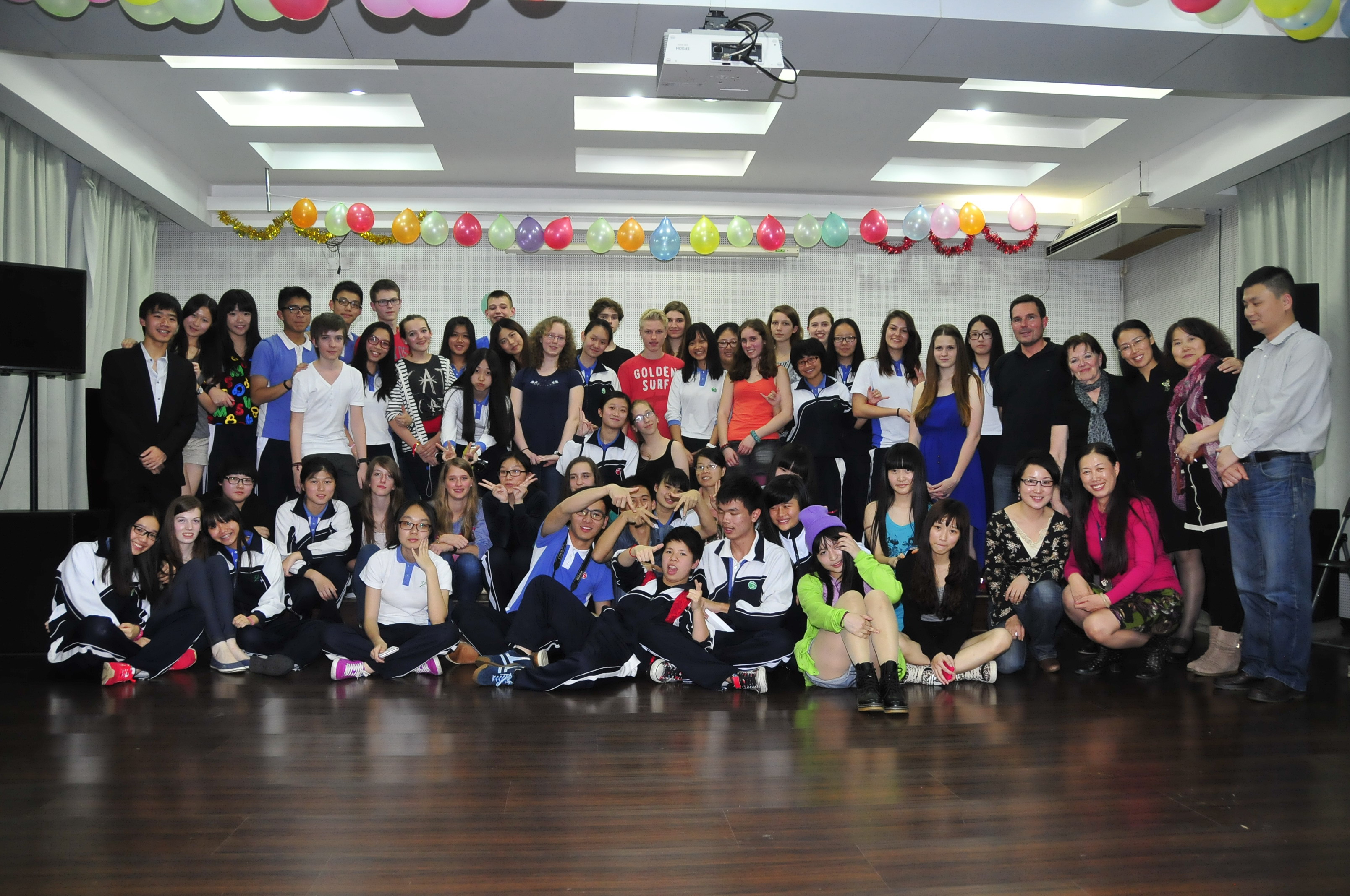 3月20—28日,德国亚琛安妮法兰克文理中学师生一行18人对我校进行了为期一周的交流访问。我校为来访的德国朋友们安排了丰富多彩的交流活动。在德国来访团即将离去的前夕,3月27晚,在综合楼音乐室,我校师生为德国朋友们组织了一场热情而欢乐的送别晚会——“中德友好交流欢送会”。