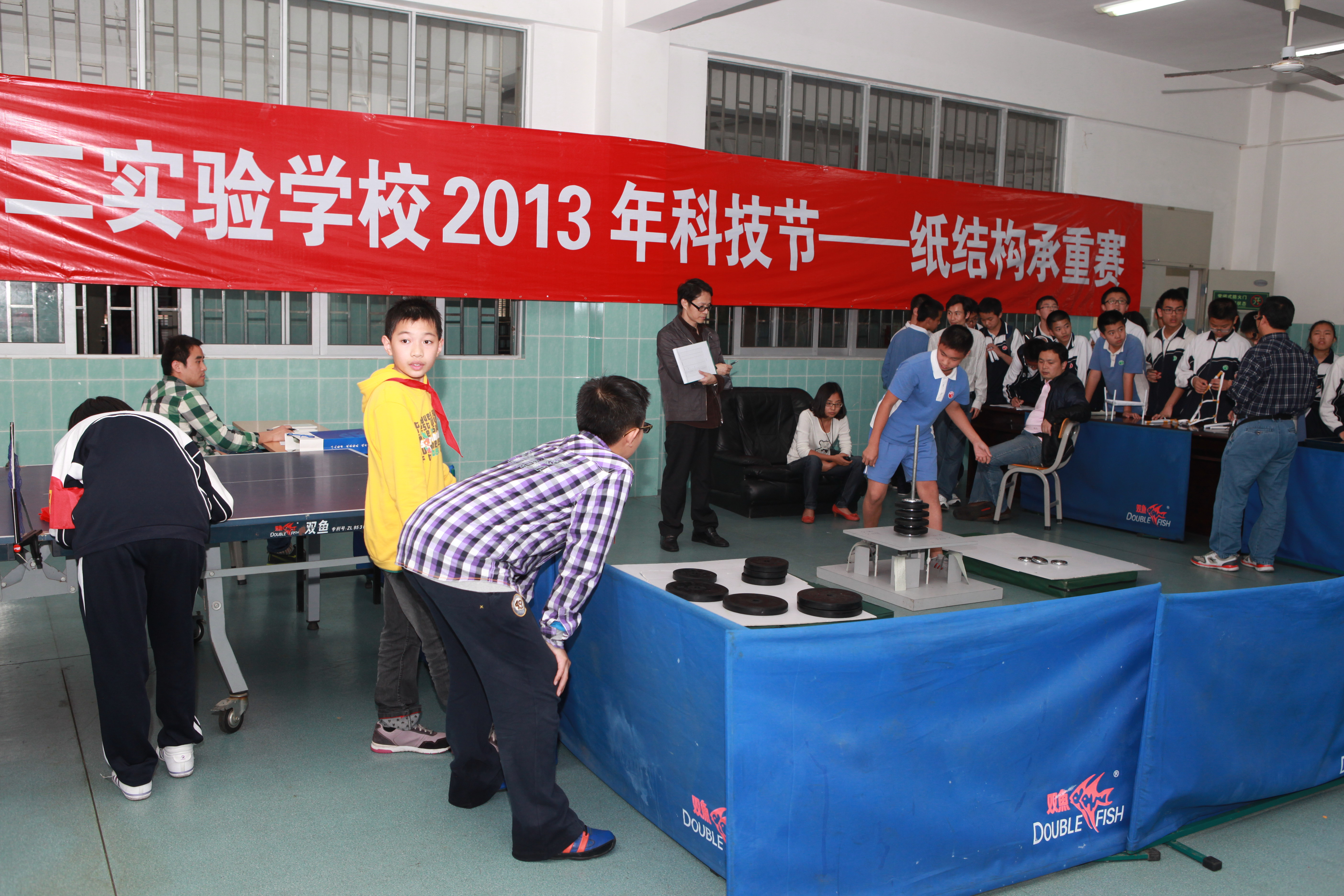 ◆纸结构承重赛 3 月27 日下午,“纸结构承重赛”在初中部文体馆一楼乒乓球室进行。富有创意的参赛选手们,仅仅三张A4 纸进行现场设计和折叠,展示和挑战自己作品的承重能力。一次又一次成功的挑战引起现场观众的阵阵掌声。