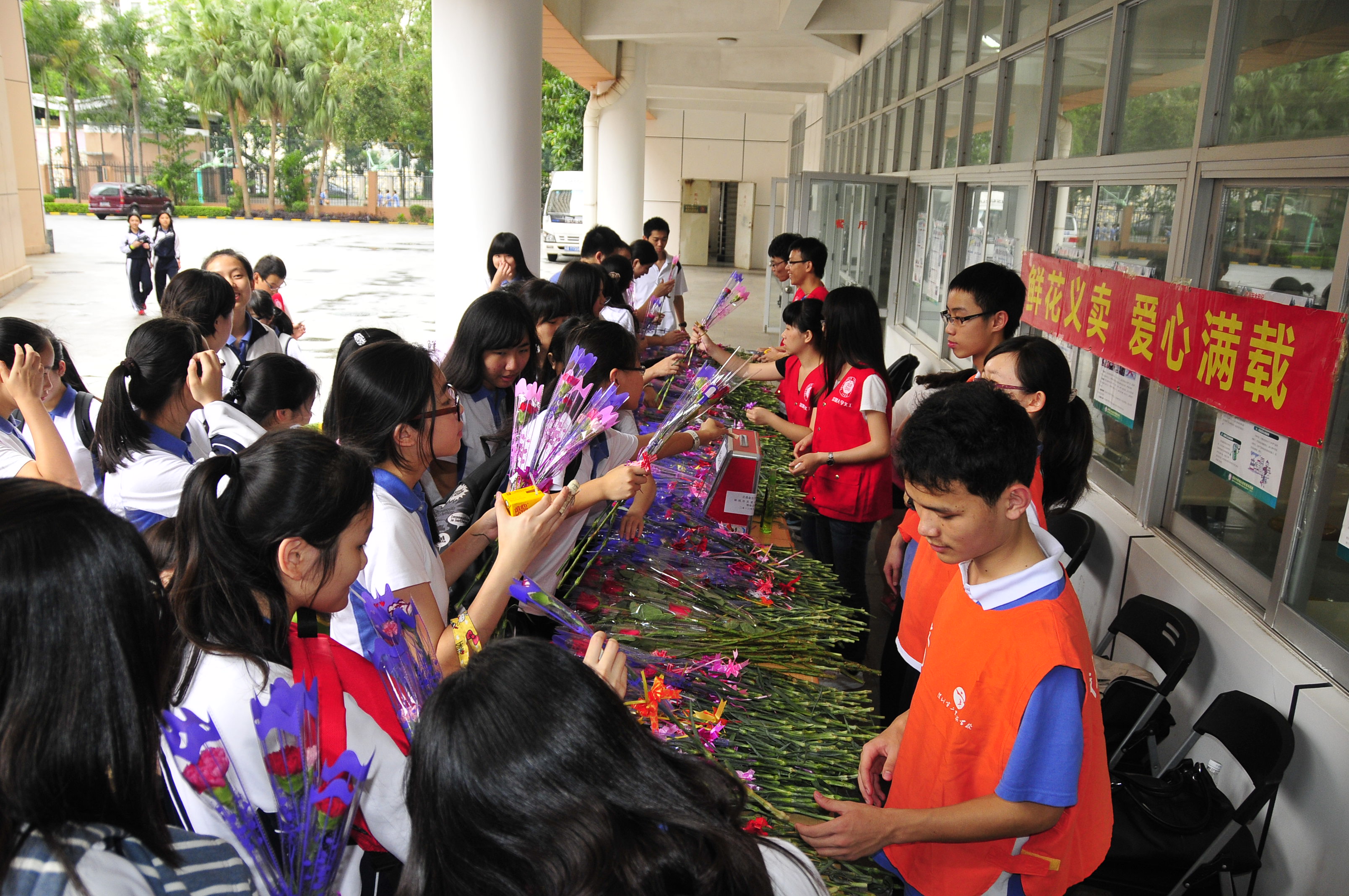 5月10日,在母亲节来临之际,我校团委、学生会和深圳大学义工联合会一起在我校校园内进行了“鲜花义卖,爱心满载”的鲜花义卖。此次鲜花义卖主要销售康乃馨和玫瑰,筹得的善款将捐往四川雅安地震灾区。我校团委、学生会干部和志愿者对此次活动进行认真组织和策划,同学们热情参与爱心义卖,通过购买鲜花既为母亲表达了温馨的祝福,又为四川雅安地震灾区奉献了浓浓的爱心。