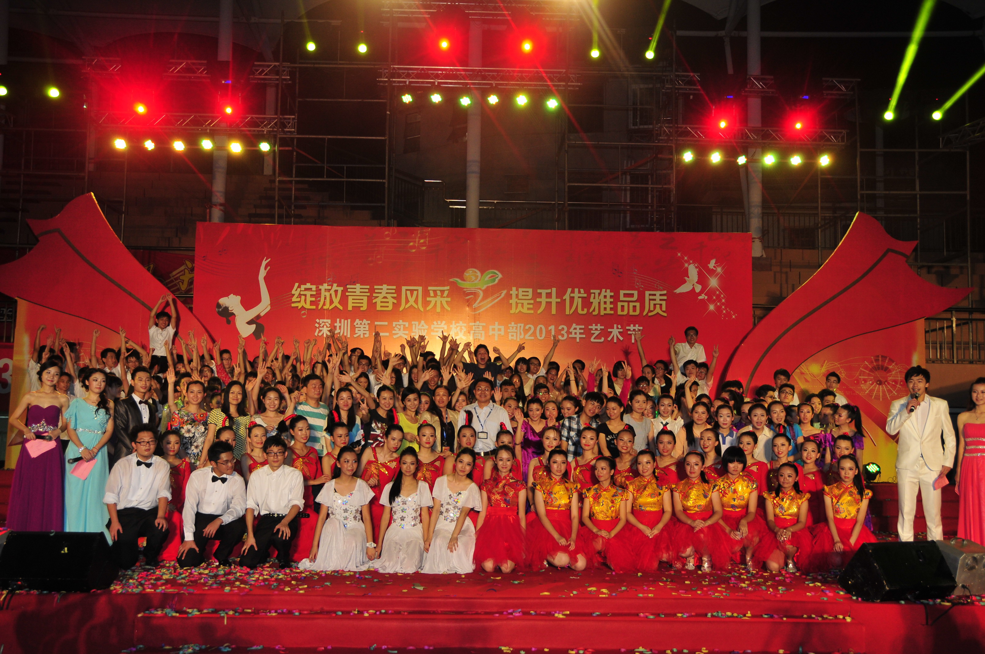 5月28日晚7:00—9:30,高中部足球场华灯闪烁,欢声雷动,高中部2013年艺术节文艺汇演在这里绚丽落幕,参演同学用令人惊喜的表演向在场的两千多位师生奉献了一场终身难忘的视听盛宴。