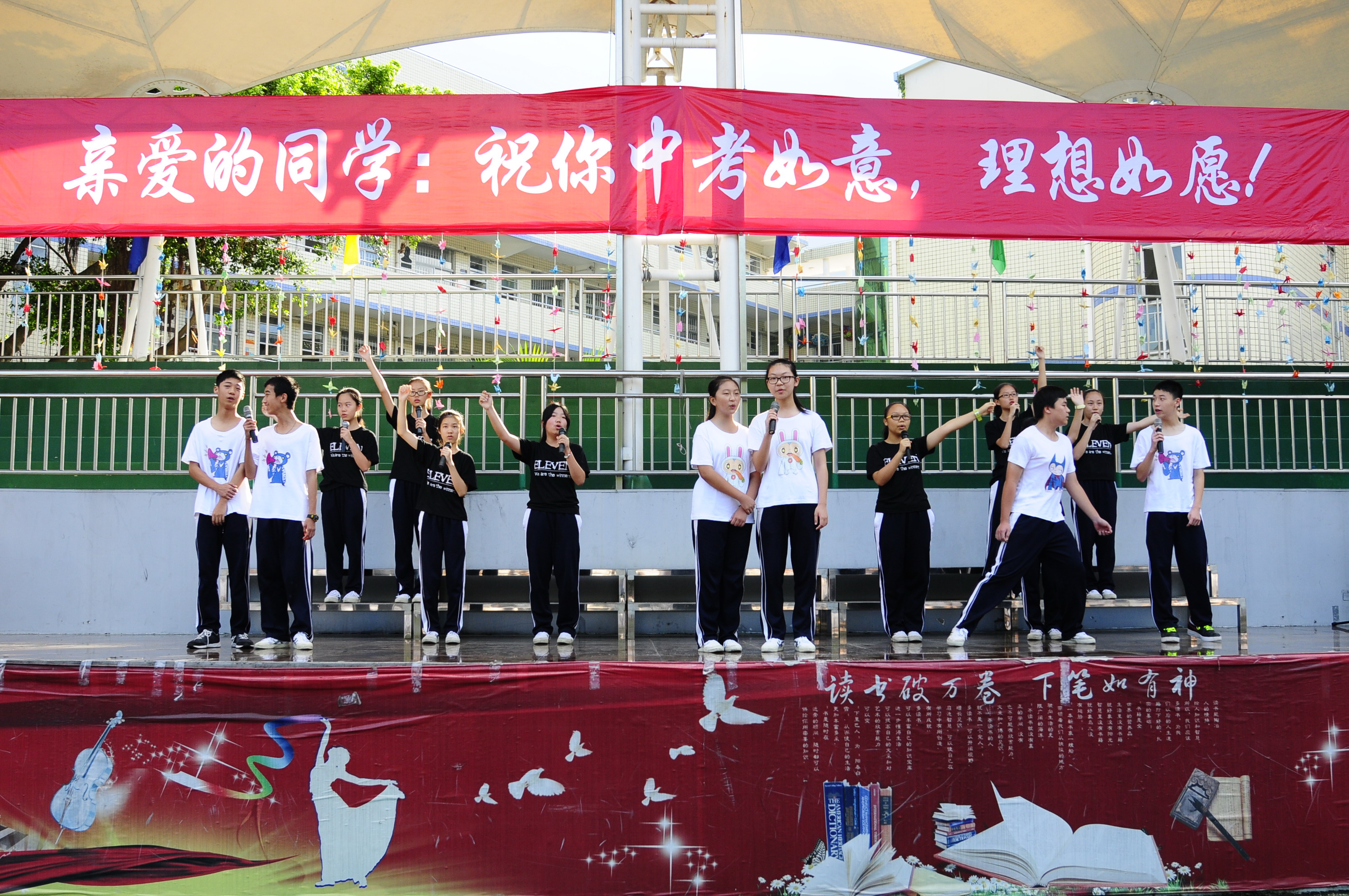 6月17日的升旗仪式上,“为初三加油”的祝福标语下,一串串千纸鹤在晨风中轻轻飘动,初二(11)、(12)班的学生代表为献上了一曲青春励志歌曲——《武装》,以铿锵有力的歌声表达对初三学子真诚的祝福与鼓励 “燃烧着心中不灭的光,让所有远方为我发烫,天真的路上偶尔很慌,别怕梦弄脏,向前冲就是希望,你是我心中不灭的光,大声地歌唱 梦想已全副武装……”歌声中,初一、初二同学为初三学长送上了承载着美好祝福的纸鹤,同学们一起大声祝愿:“初三加油!初三必胜!”