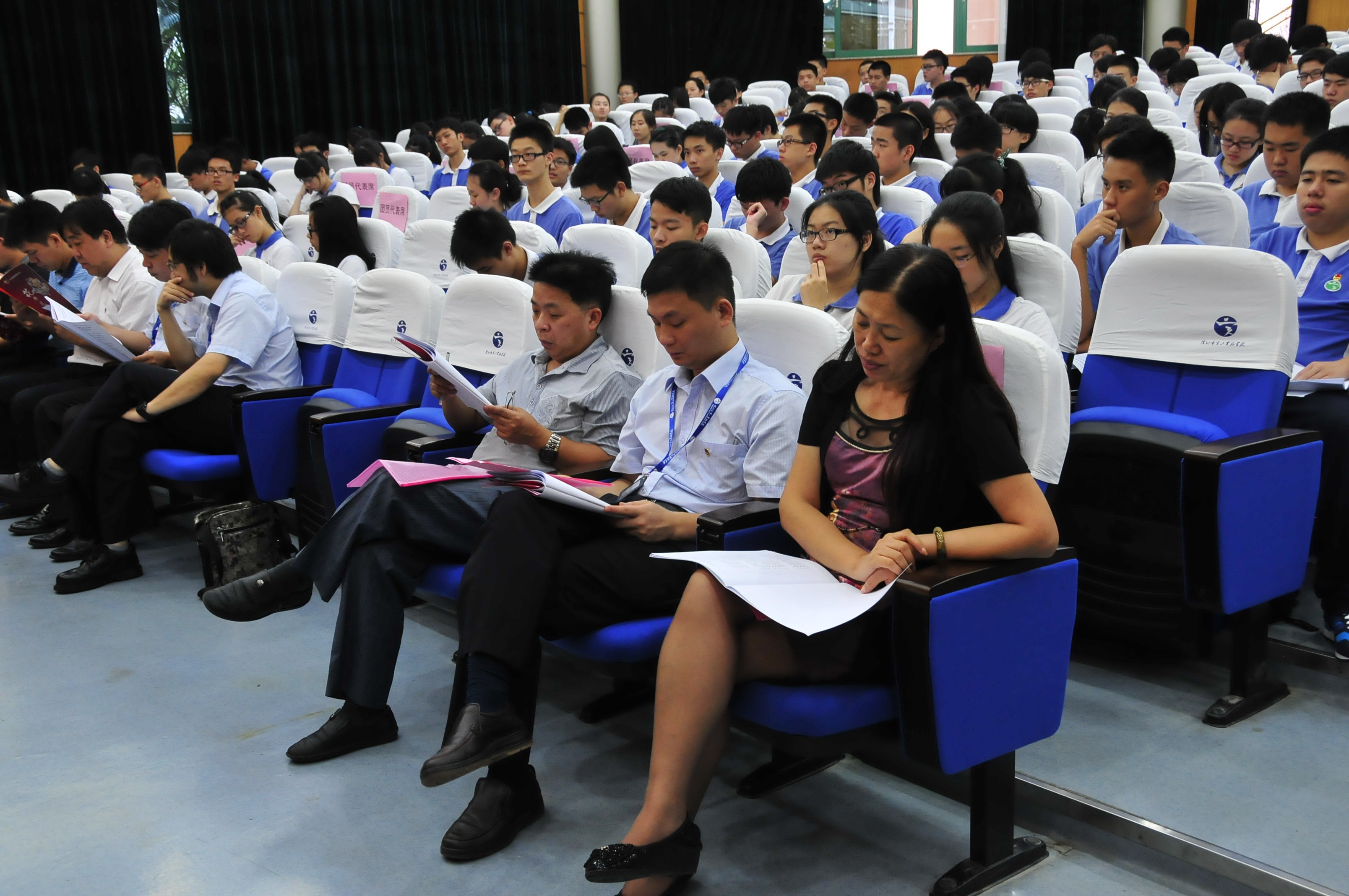 6月26-27日,我校高中部第十四届团代会、学代会胜利召开,市教育局团工委副书记段国庆、黄贝街道团工委负责人钟国华莅临指导,深圳外国语学校、深圳第三高级中学、深圳市科学高中等兄弟学校团委纷纷发来贺电,并派出代表参会观摩。