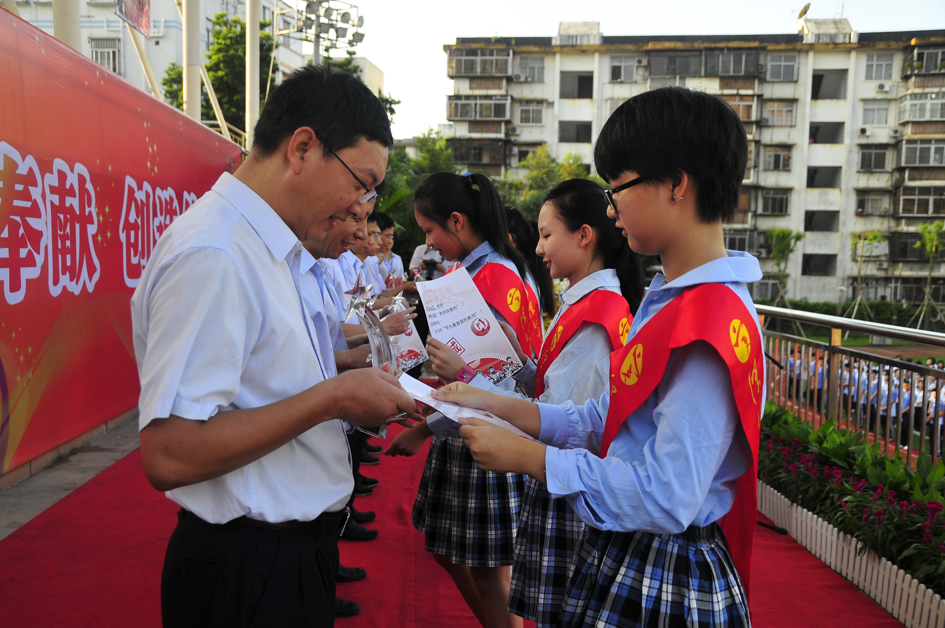 赵校长发表了热情洋溢的长篇讲话。他历数了过去的一学年学校在在广大师生的努力下,各方面都取得了令人瞩目的成绩:中、高考成绩稳中有升,中考在罗湖区乃至整个深圳市继续保持领先优势,高考各批次上线率再创新高;学科竞赛喜讯频传,多学科实现学校奥赛历史上的重大突破;精品社团影响继续扩大,机器人社团在全球总决赛中荣获优秀奖,街舞社在在全市中学生社团中享有盛名;传统项目再创佳绩,女篮在第十届全国高中女子篮球锦标赛中获得亚军,男篮已在市“体彩杯”少年儿童篮球锦标赛中夺得了第一个市级冠军;国际交流空前频繁,与德、韩、美各国均有良好沟通;多元成长通道初步建立,国际班逐渐走上了正轨,传媒艺术班得以开创,与北京大学等名校的合作日益密切。