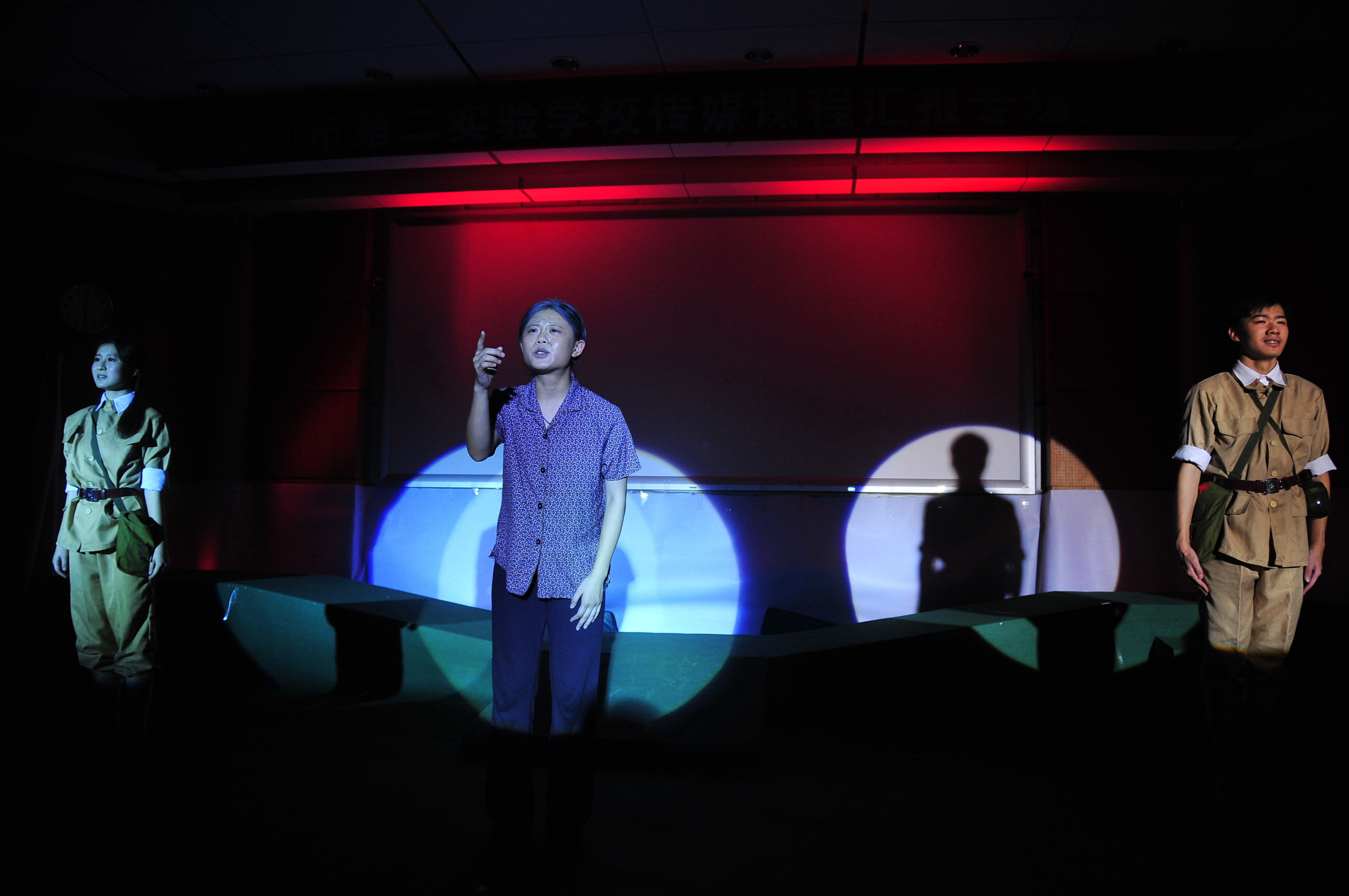 传媒班的同学们倾情演绎了1950年代解放军进藏过程中的感人故事,讴歌了女兵白雪梅与战友之间的革命情谊,以及解放军与藏民之间的鱼水深情。美观得体的舞台效果,跌宕起伏的剧情设计,青涩稚嫩却亮点频现的精彩表演,赢得了观众席上师生、家长和媒体记者的阵阵热烈掌声。这是传媒班的同学们在张怡田、徐袅、刘斯丹等老师的指导下,自导、自演、自己筹划组织的一场高水平话剧。在10月31日与11月1日两天的汇演中,学校领导、老师和同学们争相前来观看,入场券一票难求,更多慕名而来却因座位人数限制未能如愿进场观看的同学提出了加演的要求。演出效果得到了各方的高度肯定。