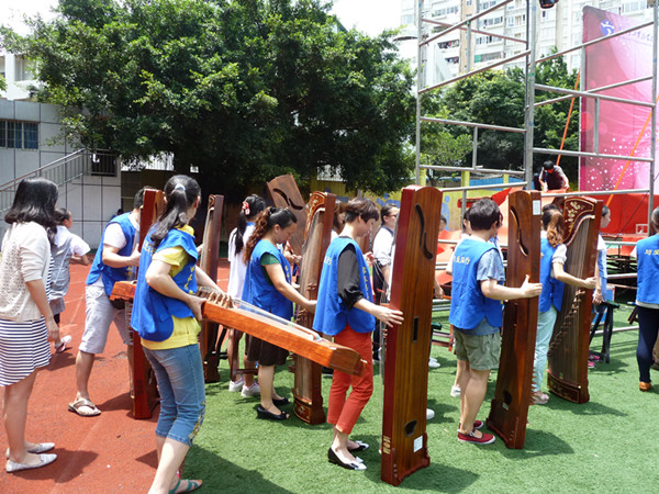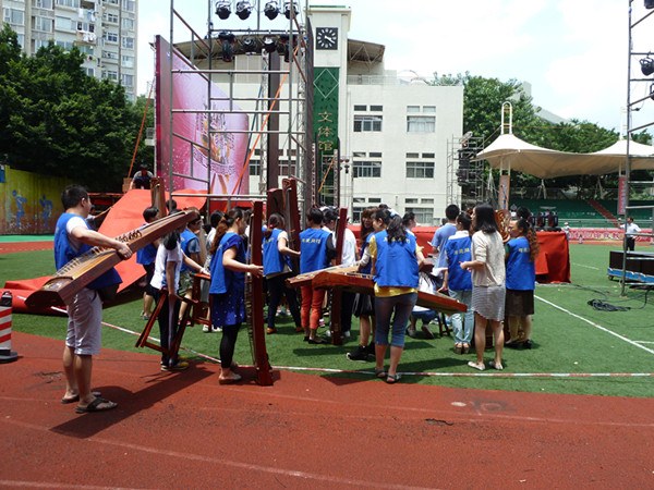 除了舞台上的志愿者,校园里也随处可见为艺术季汇演协助服务的家长志愿者,协助演出组的家长志愿者在炎热的中午,全程参与排练,熟悉会场和演出流程,使得演出幕后工作有条不紊,也使得汇演顺利进行。