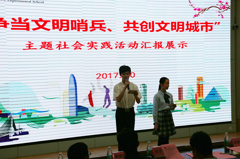 11月14日,第五届全国文明城市名单正式发布,深圳市将继续保留全国文明城市荣誉称号。11月13日,我校在高中部报告厅举行“争当文明卫士,共创美丽深圳”主题社会实践成果汇报会,高一年级6支社会实践服务队代表向现场200多名师生交流分享参与此次主题社会实践活动的成长感悟与心得体会。