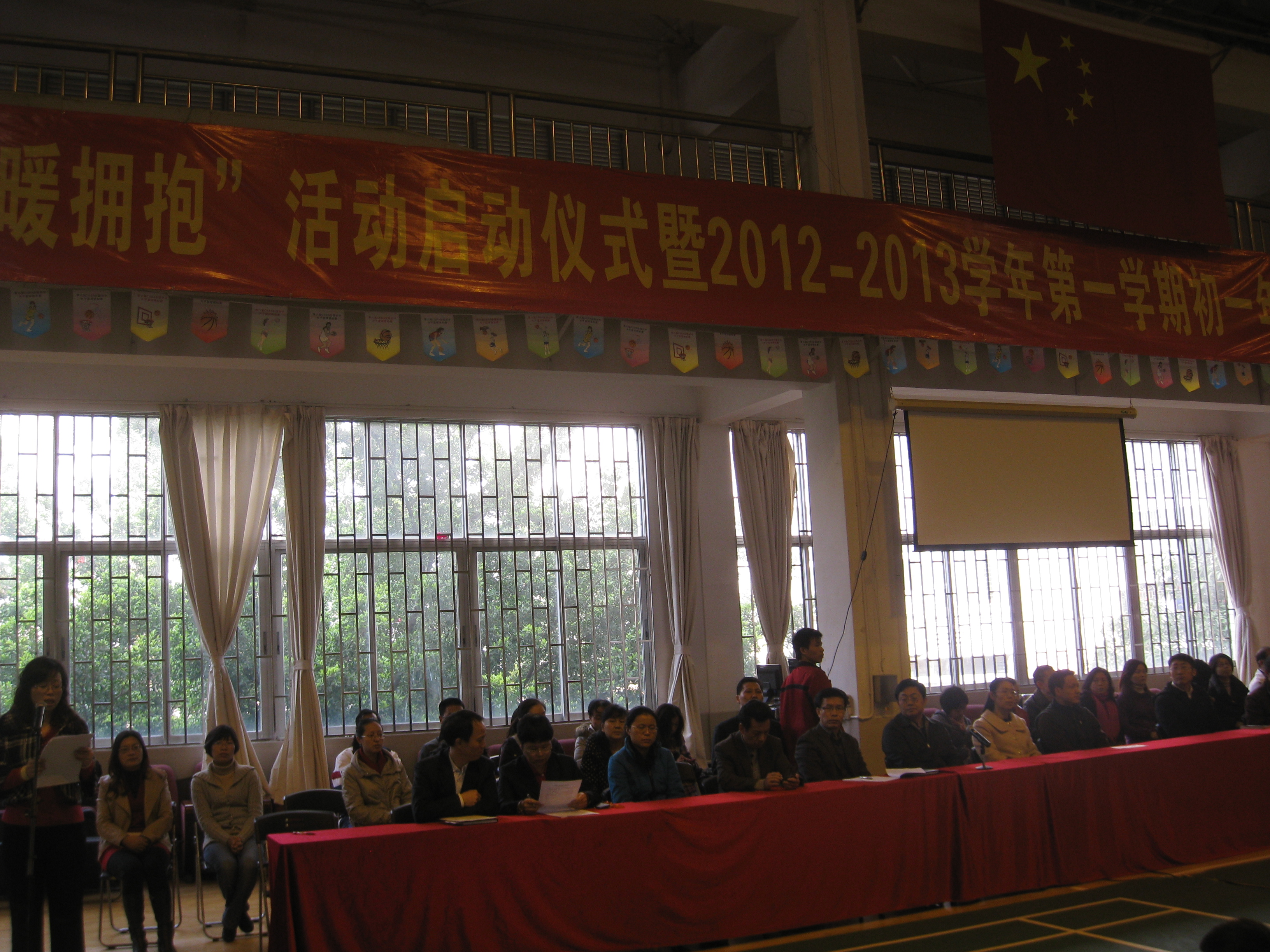 2013年1月18日,初一年级2012-2013学年第一学期结业典礼在文体馆三楼举行,赵校长、郑校长、何校长、李校长等校领导出席了会议,并为荣获红色标兵、优秀班干、进步奖的同学颁发了荣誉证书,学生代表呼吁同学们要在假期合理安排时间,劳逸结合,并要注意安全。左明云主任、黄俊仁主任分别在会上讲话,表达了对学生的关怀和鼓励,赢得了大家的阵阵掌声,结业典礼在和谐的氛围中圆满结束!