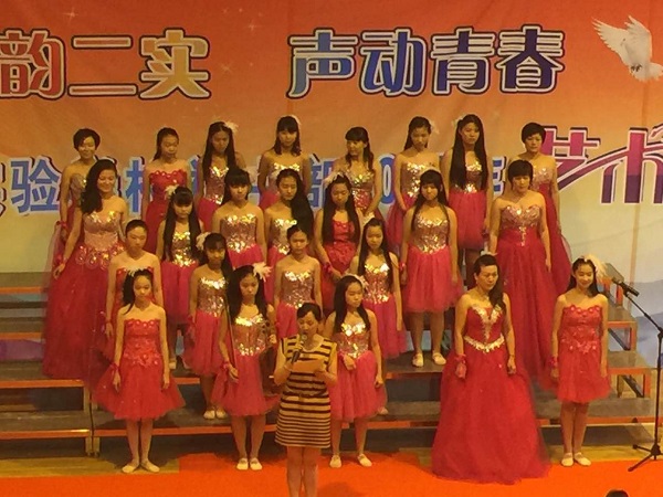 阳光绿色,歌声飞扬。14个班级队列有序、着装统一、精神昂扬、歌声嘹亮。领唱与指挥配合默契,轮番展示了独具匠心编排的合唱曲目,极具表现力与感染力,无不洋溢着蓬勃向上、积极进取的青春风采。有感慨时光短暂、珍惜青春的校园歌谣;也有相信自己、热情豪放的梦想之歌;更有充满温情、相亲相爱的love songs。期间表演形式更是丰富多彩,不仅有民族范儿十足的扇子舞,老师家长的同台献艺,更有耐人寻味的舞台剧、感人至深的朗诵和传递浓浓爱意的手语。各班以激情的演唱为观众带来了一场精彩的视听盛宴,现场高潮迭起,欢呼声此起彼伏。在比赛最后,桂红老师和杨春平老师高歌一曲《贵妃醉酒》,演唱声情并茂,全场掌声雷动。