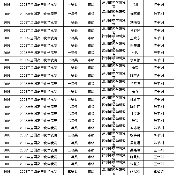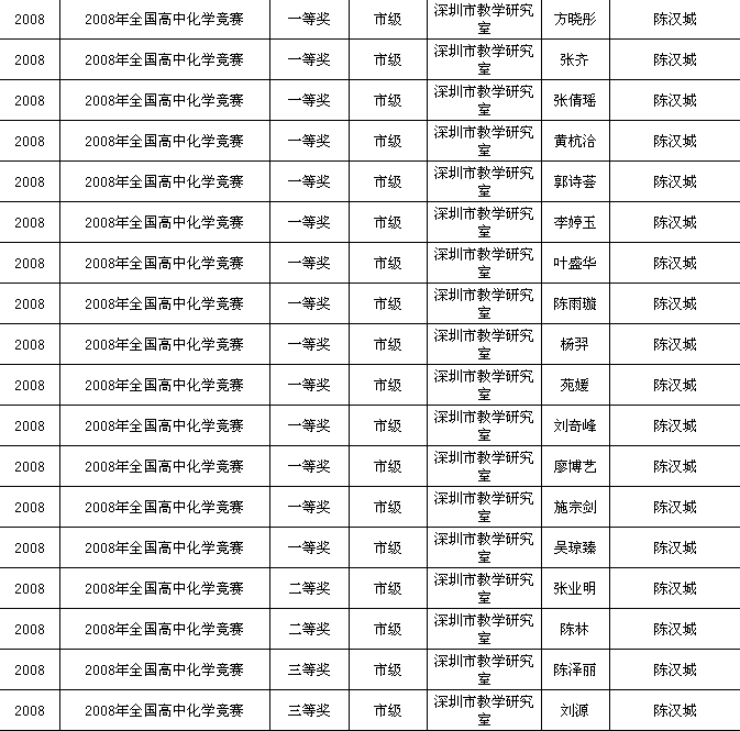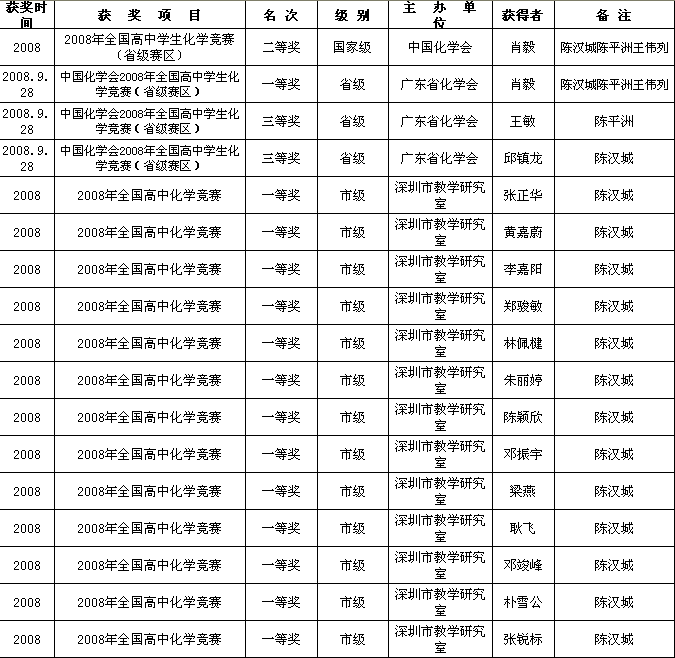 2008年化学竞赛获奖情况统计表