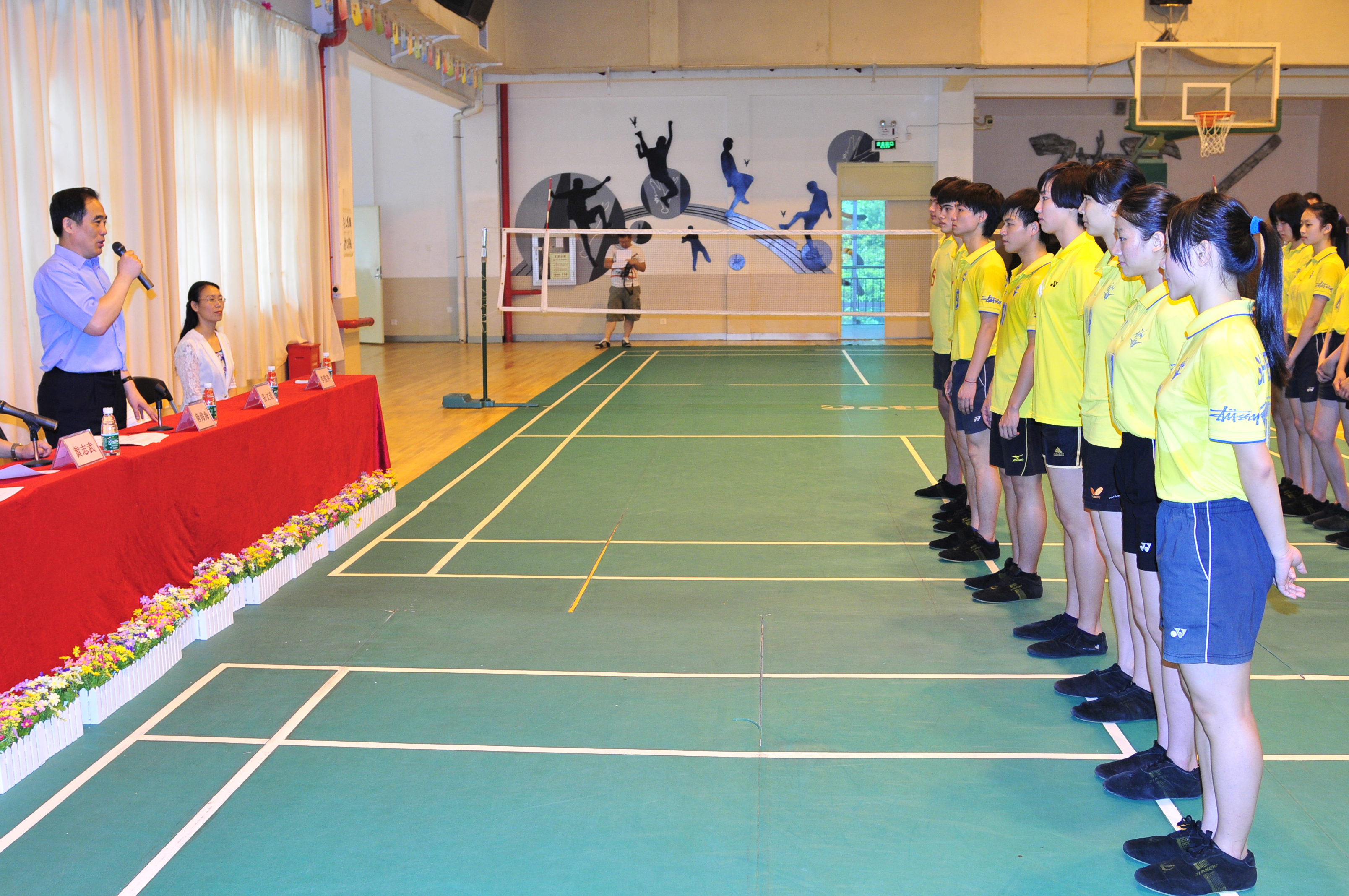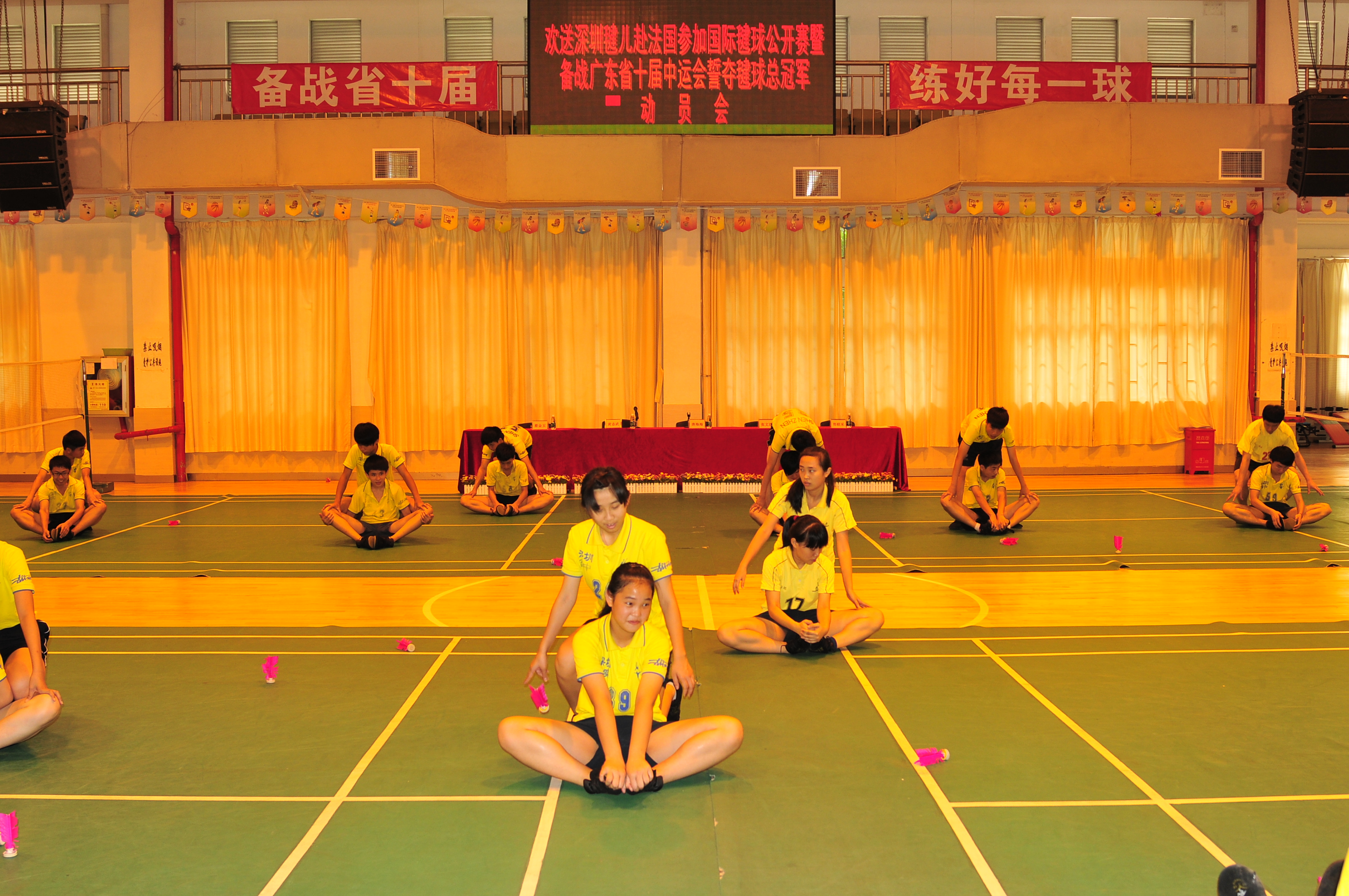 2012年5月24日上午,深圳市教育局唐海海副局长来我校视察毽球队代表中国赴法国参加世界毽球公开赛以及备战广东省第十届中学生运会的情况,在“欢送深圳毽球队出征法国公开赛暨誓夺省中学生运动会总冠军运动会”上,唐海海副局长充分肯定了我校在深圳毽球发展中的领头作用,高度赞扬了学校领导和教练员对毽球运动发展所做的贡献,鼓励运动员在出访的国际毽球比赛中要打出中国运动员的士气。讲话中,唐局长激动的说:你们是代表中国,你们是出征的战士,你们要打出中国运动员的风采,为国争光。
