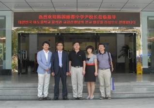 2012年5月24日,韩国丽都中学尹瑟泉副校长(윤석권)一行来我校参观访问,赵立校长在11楼会议室举行了简短而隆重的欢迎会。会上,赵校长向来宾们介绍了近年来学校在课程设置、教师队伍建设和国际交流合作等方面发展规划、具体做法及取得的成果。丽都中学尹校长详细介绍了丽都中学的基本情况及办学特色。