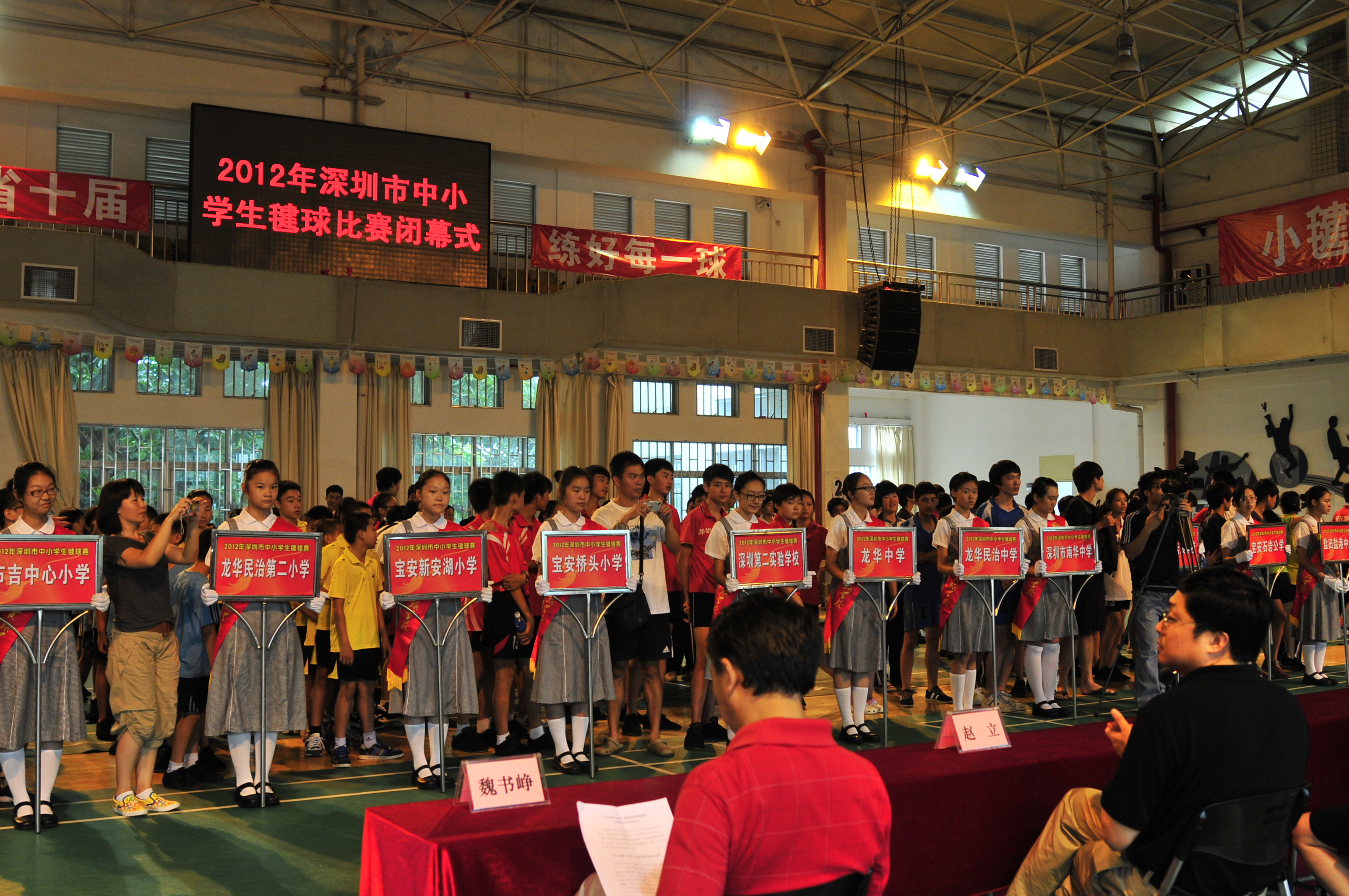 2012年深圳市中小学毽球赛在我校初中部举行,来自全市各区19所中小学校的48支男、女代表队,经过两天半时间、102场紧张激烈的比赛,于6月16日上午降下帷幕。