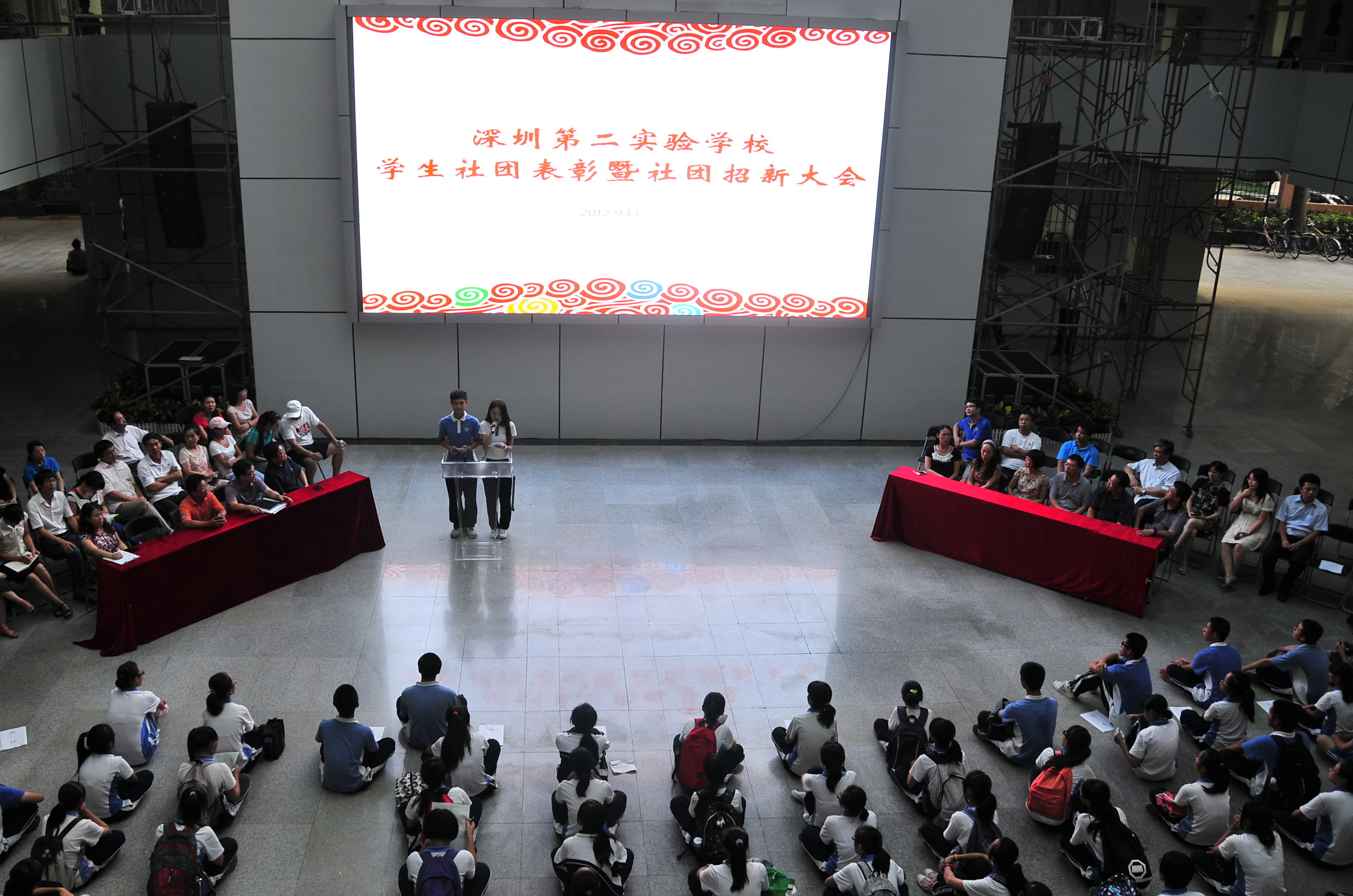 隆重热烈的集会,鳞次栉比的展棚,沸腾踊跃的人群,二实校园再次展现出无限的青春活力。9月13日下午,2012年社团表彰大会暨招新大会在高中部圆满举行。
