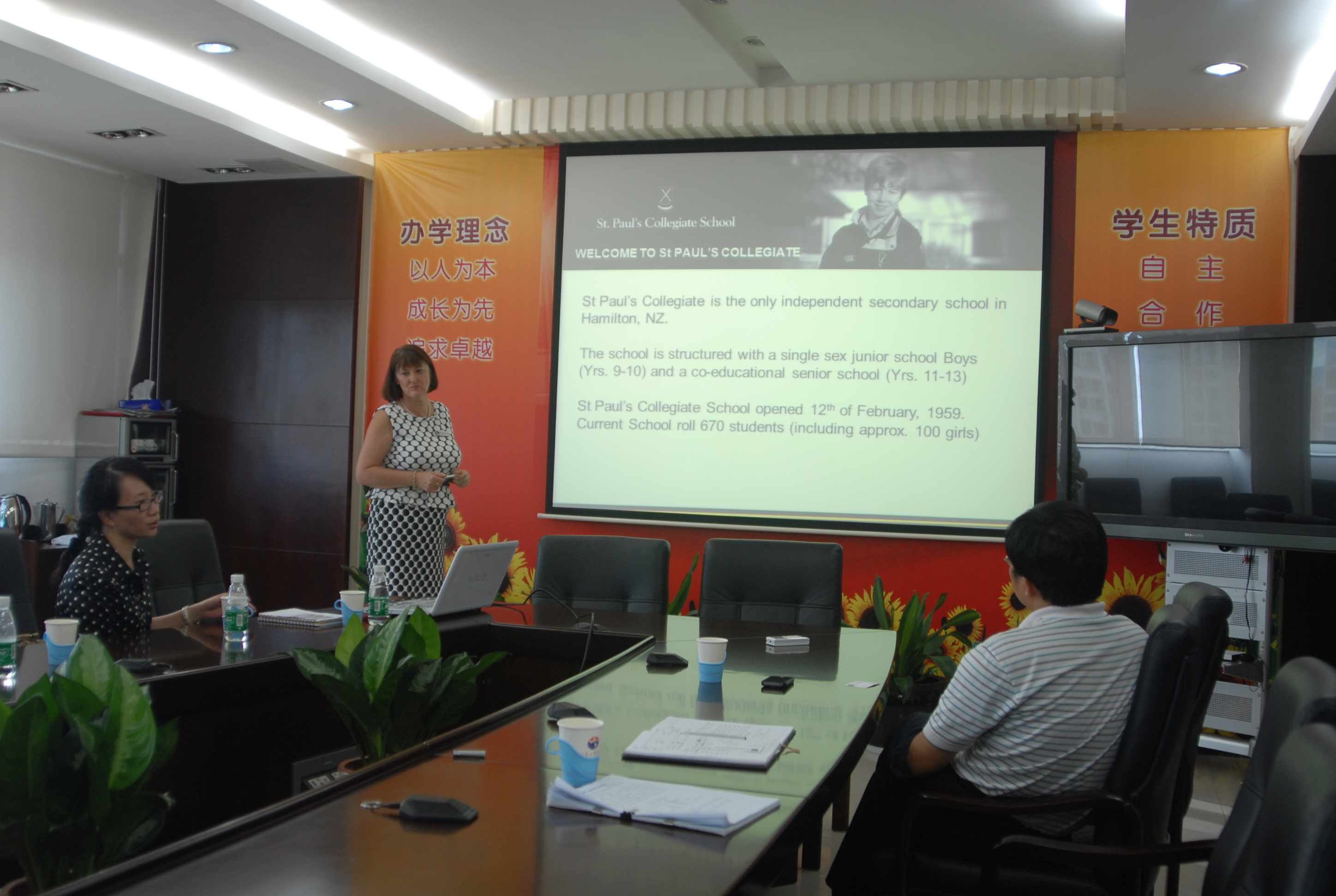 9月12日,新西兰汉密尔顿市圣保罗学校国际学生部主任Helen Richardson来我校访问。Helen Richardson参观了我校校园,对我校优美的教学环境、先进的教学设施和浓厚的校园文化非常赞赏。赵立校长在11楼会议室接待了来宾,双方进行了友好的会谈。
