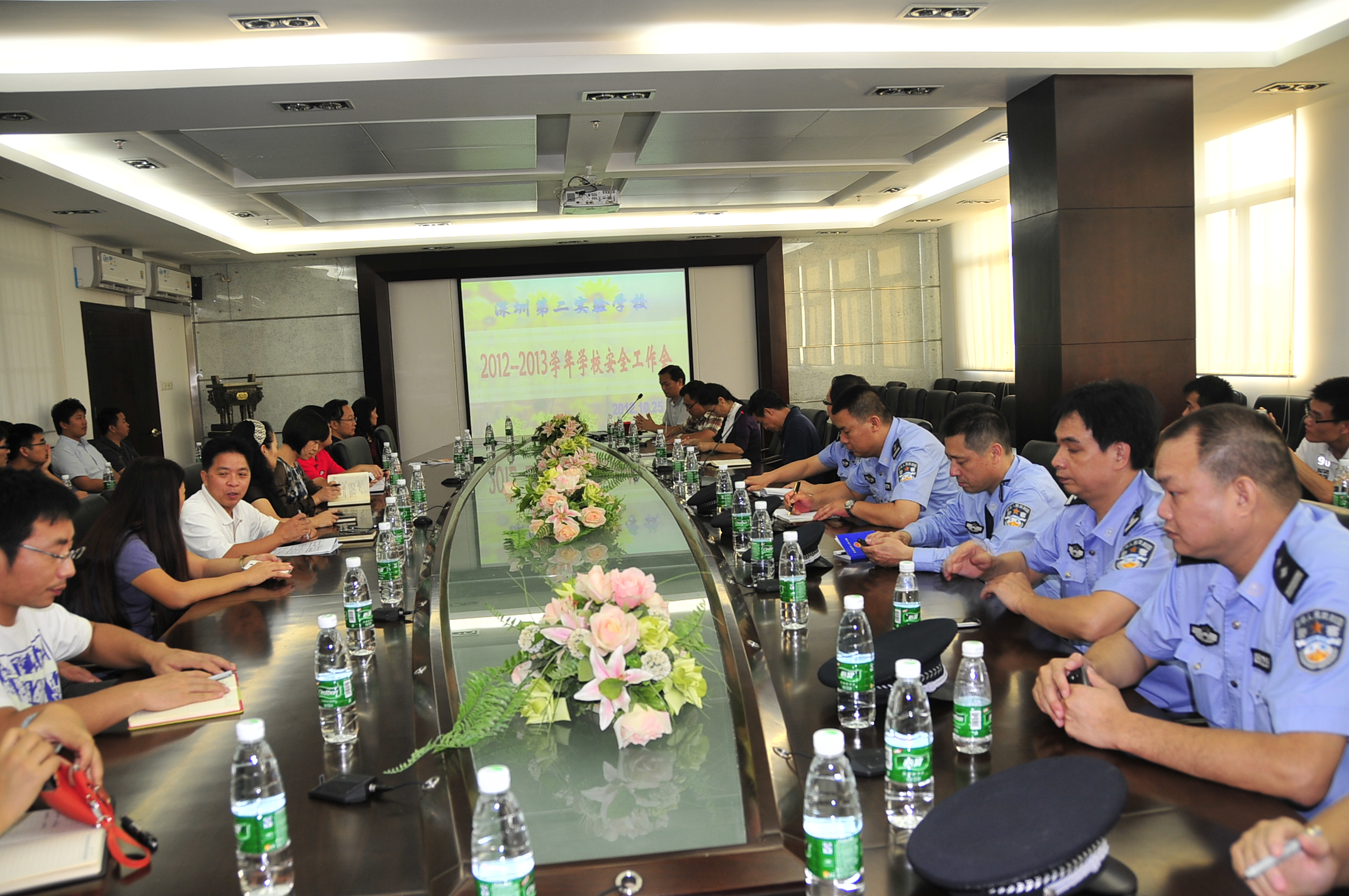 10月25日下午,我校在高中部11楼会议室召开了2012-2013学年学校安全工作会。会议由安全处李木林主任主持,学校安全委员会成员、法制副校长(黄贝派出所两位副所长)、法制辅导员和消防辅导员(黄贝派出所的五位干警)及学校处室(年级)安全管理员参加了会议,在我校挂职学习的贵州省白云区第八中学的刘军副校长也参加了本次会议。