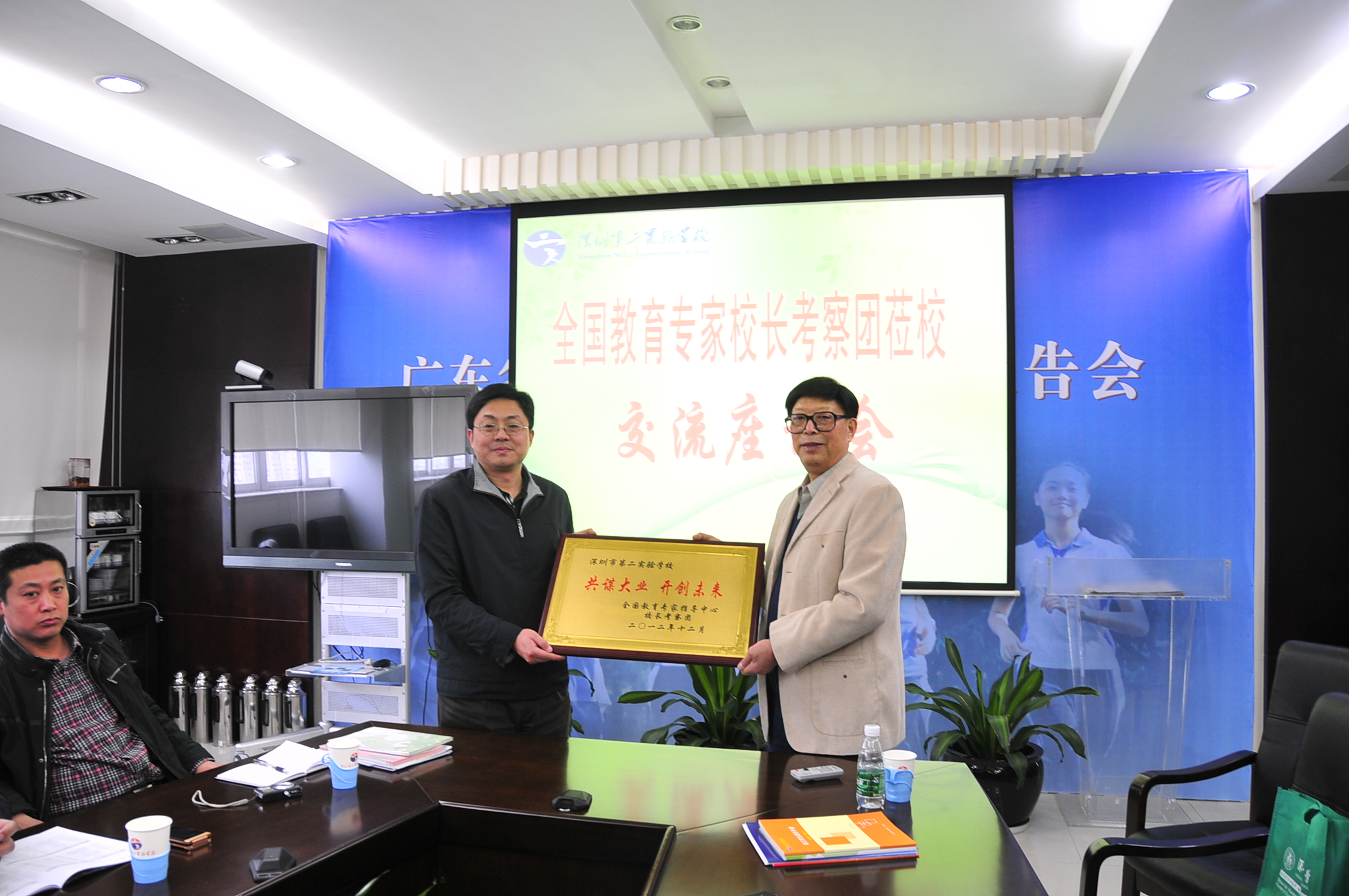 考察团授予我校“共谋大业,开创未来”的牌匾,双方共同希望今后能加强联系,共同为教育事业的发展,为课程改革作出应有的贡献。