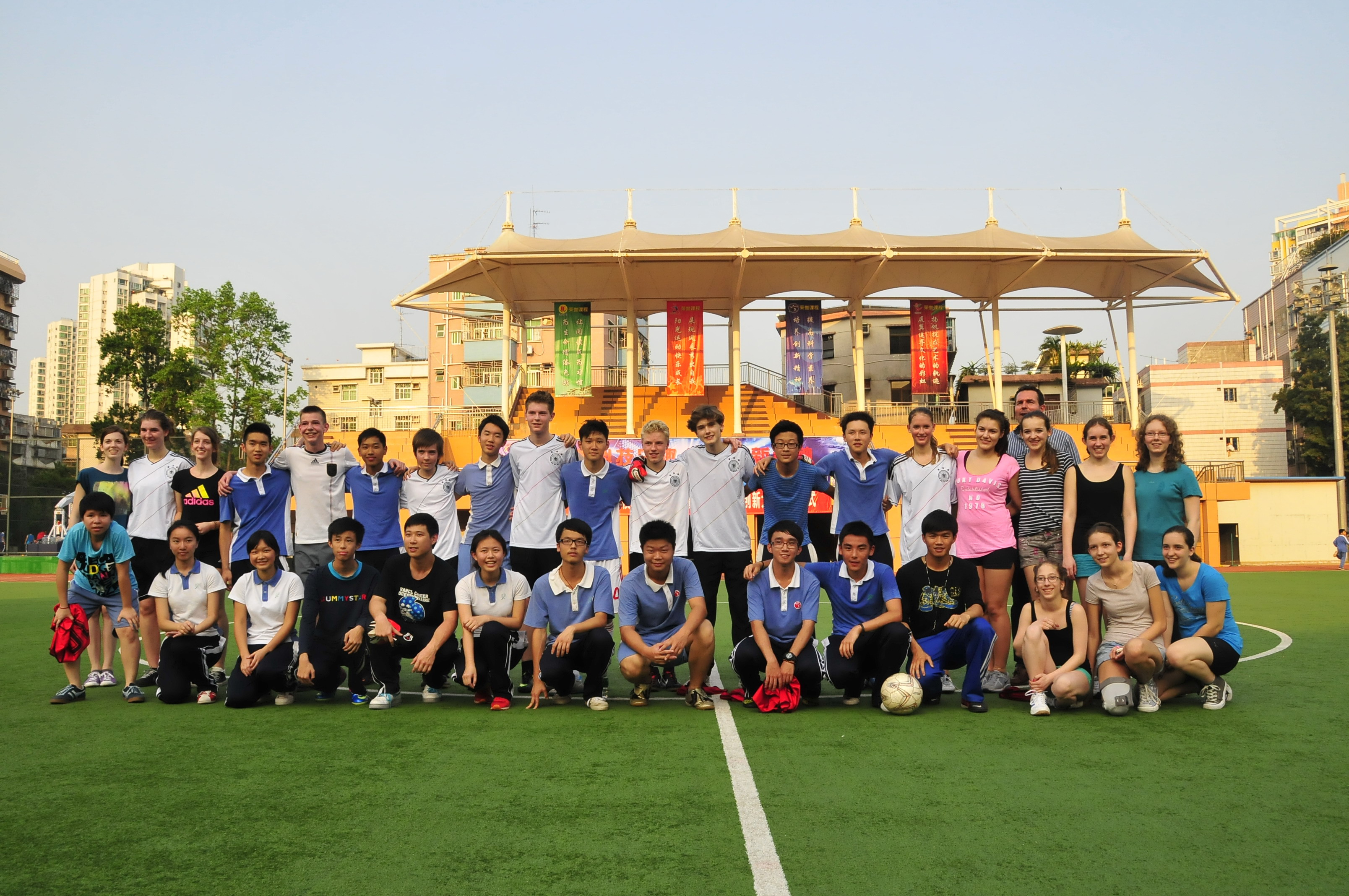 “友谊第一、比赛第二”,我校足球队员在此次比赛中不仅和德国学生切磋了球艺,更增进了两校师生之间的友谊。