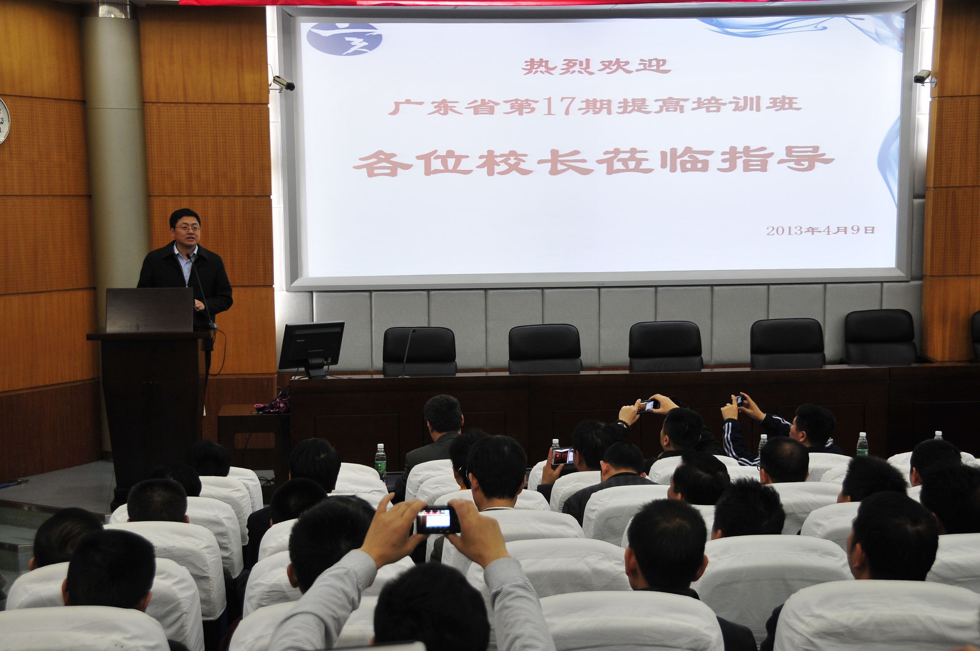 4月9日,广东省第17期校长提高培训班65位校长在省中小学校长培训中心刘永林教授带领下来我校交流访问。