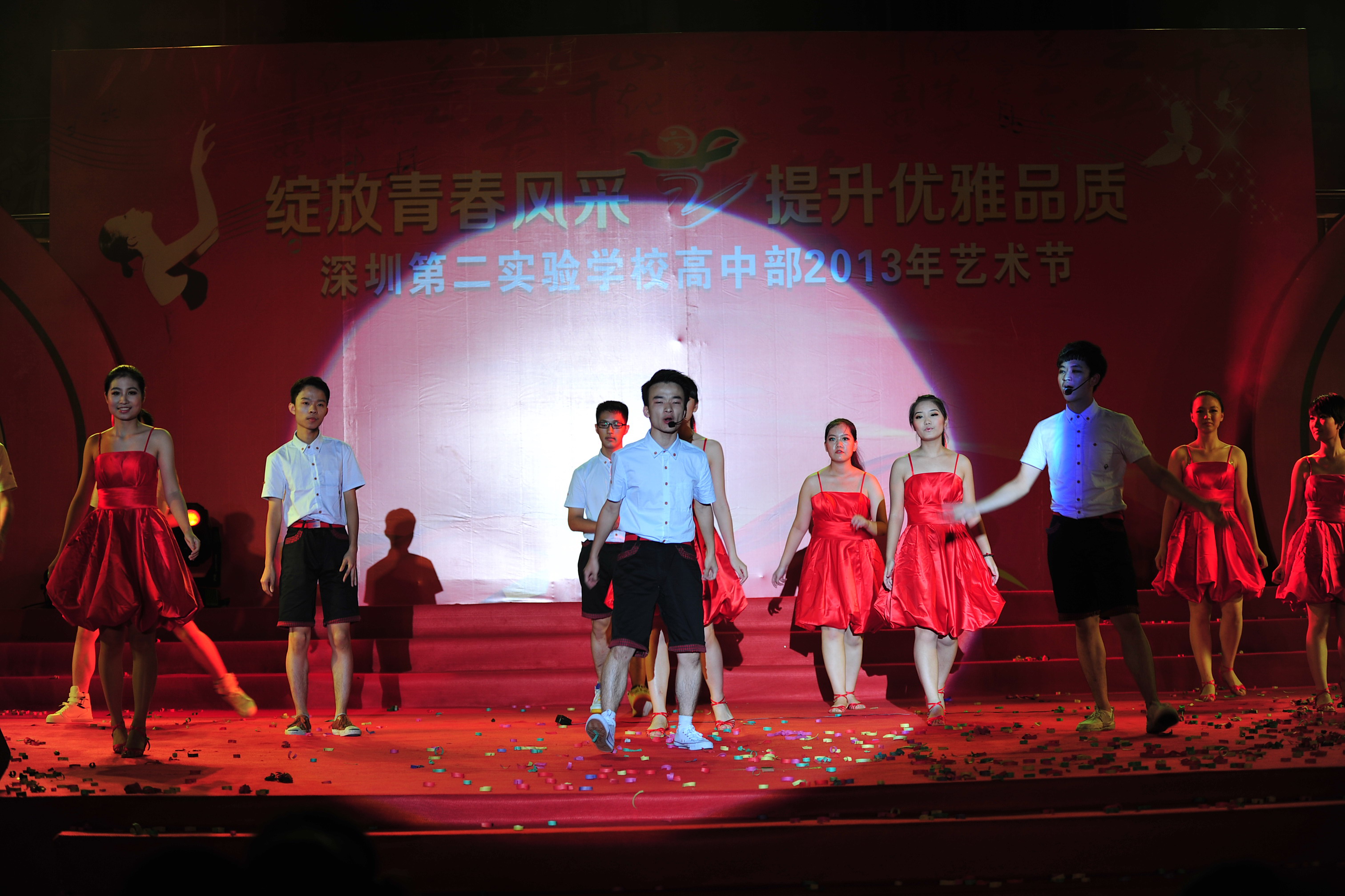 5月28日晚7:00—9:30,高中部足球场华灯闪烁,欢声雷动,高中部2013年艺术节文艺汇演在这里绚丽落幕,参演同学用令人惊喜的表演向在场的两千多位师生奉献了一场终身难忘的视听盛宴。