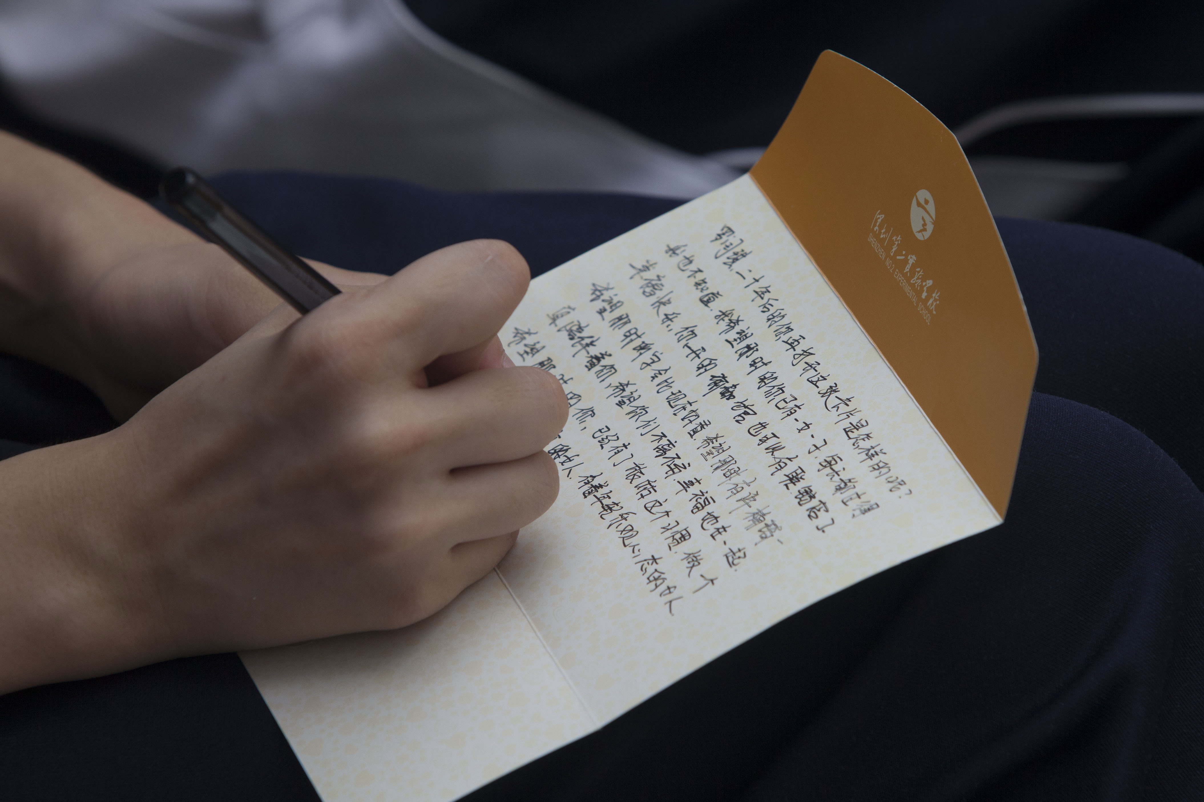 “当我们转身的那一刹那,内心里还真的有点不舍。”学生郑东铧代表学生发言。学校让同学们为20年后的自己写下心愿并投入心愿箱,相约20年后打开。每位同学得到了学校发的印有自己学号和姓名的纪念章,校长赵立为每一位同学颁发毕业证书,和每一个同学握手、拥抱。