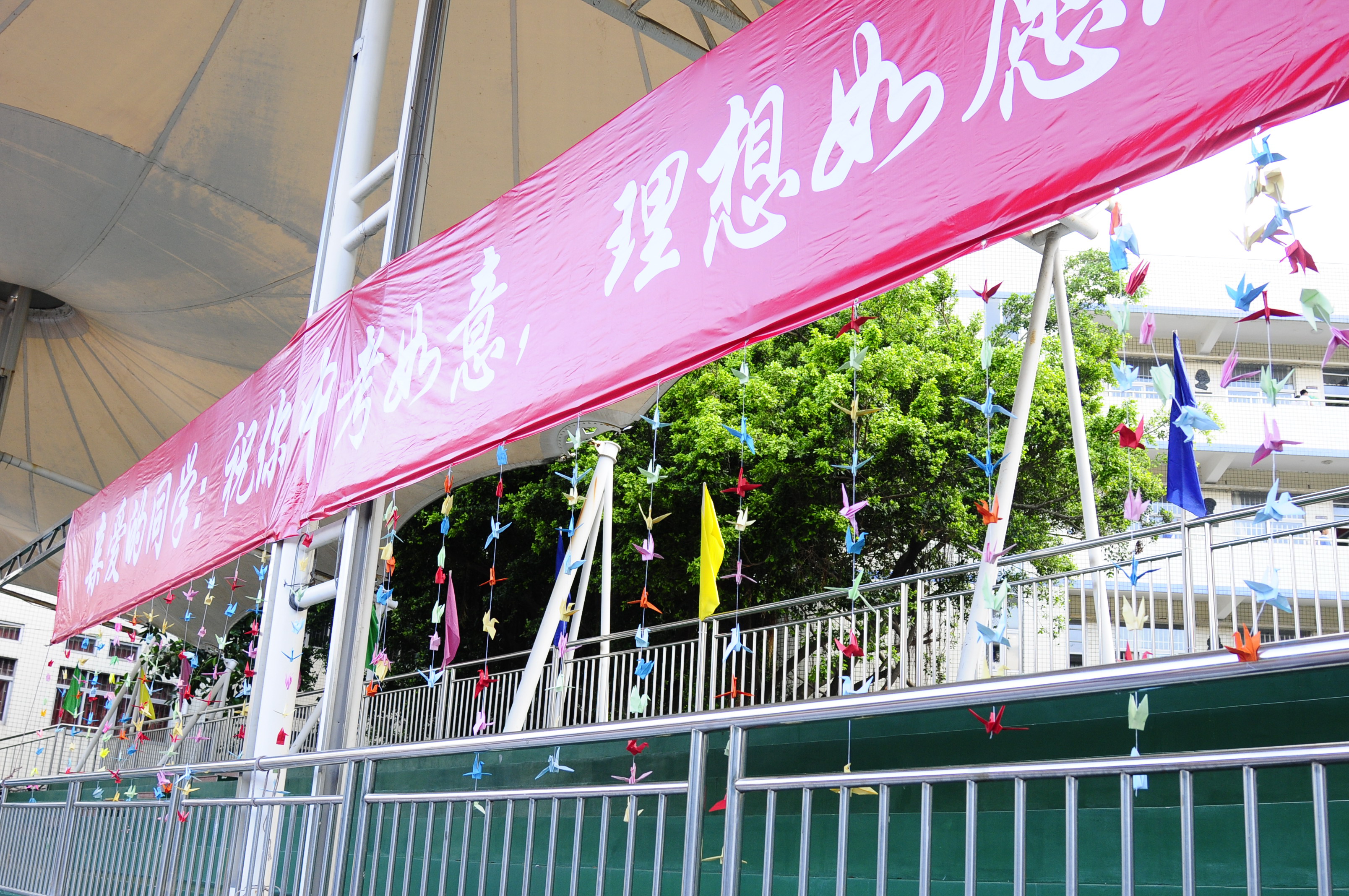 6月17日的升旗仪式上,“为初三加油”的祝福标语下,一串串千纸鹤在晨风中轻轻飘动,初二(11)、(12)班的学生代表为献上了一曲青春励志歌曲——《武装》,以铿锵有力的歌声表达对初三学子真诚的祝福与鼓励 “燃烧着心中不灭的光,让所有远方为我发烫,天真的路上偶尔很慌,别怕梦弄脏,向前冲就是希望,你是我心中不灭的光,大声地歌唱 梦想已全副武装……”歌声中,初一、初二同学为初三学长送上了承载着美好祝福的纸鹤,同学们一起大声祝愿:“初三加油!初三必胜!”
