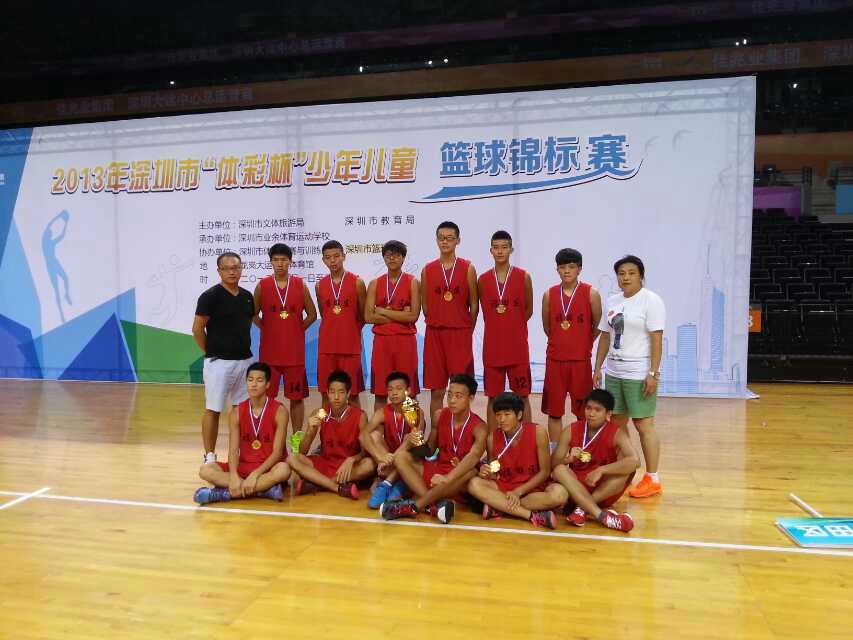 8月1-3日,2013年深圳市“体彩杯”少年儿童篮球锦标赛在龙岗大运中心体育馆举行,市各区代表队参赛。我校男篮与福田体校合作,代表福田区参加了此次比赛,最终在7支代表队中勇夺冠军,我校队员吴煜晨获得“体育道德风尚运动员”称号。这是校男篮成立不到一年以来拿到第一个市级冠军。