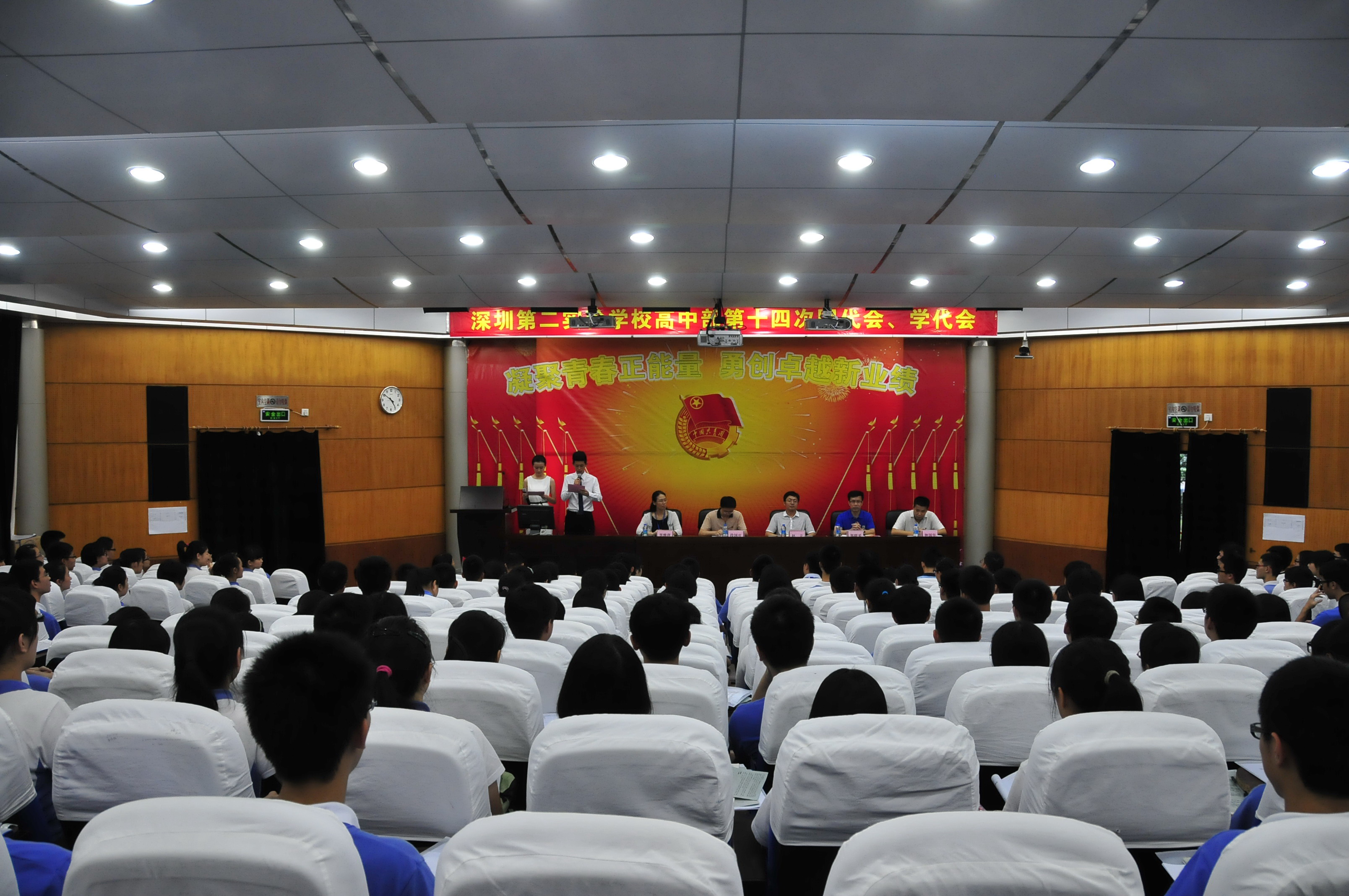 6月26-27日,我校高中部第十四届团代会、学代会胜利召开,市教育局团工委副书记段国庆、黄贝街道团工委负责人钟国华莅临指导,深圳外国语学校、深圳第三高级中学、深圳市科学高中等兄弟学校团委纷纷发来贺电,并派出代表参会观摩。