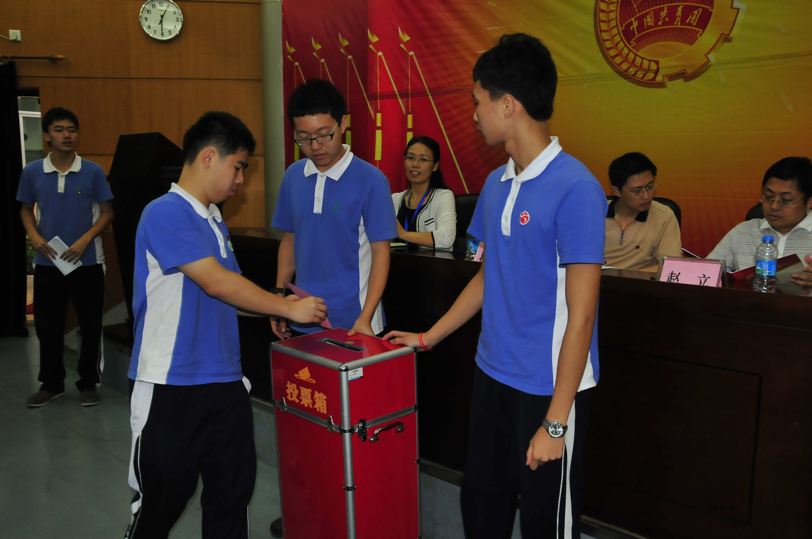 会议选举产生了高中部第十四届团委、学生会、社团联合会成员,