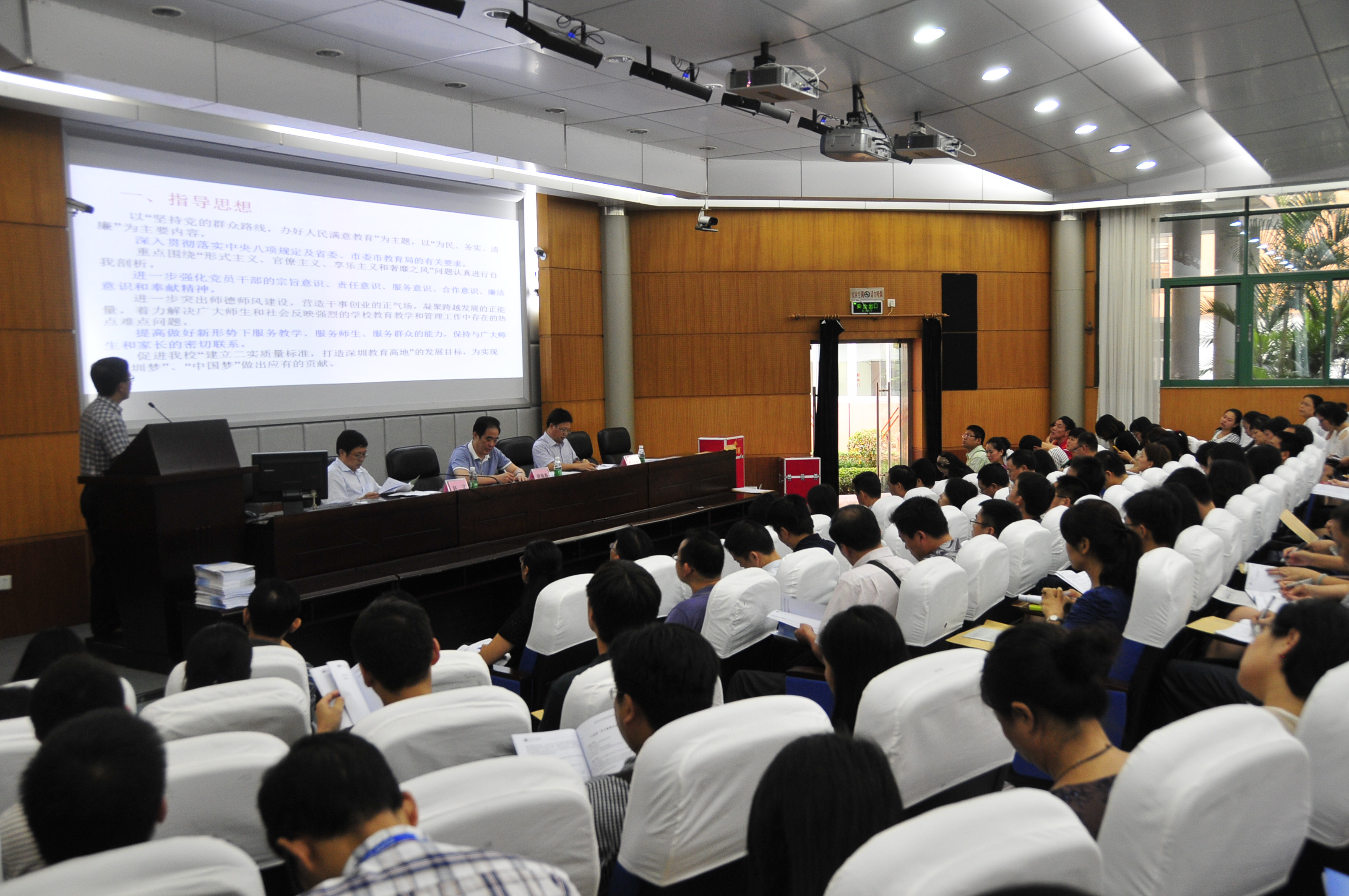 动员大会上,郑联采副校长从指导思想、目标要求、范围时间、活动环节、活动要求5个方面解读了《深圳第二实验学校开展党的群众路线教育实践活动实施方案》,并对实践活动的开展做了具体安排。