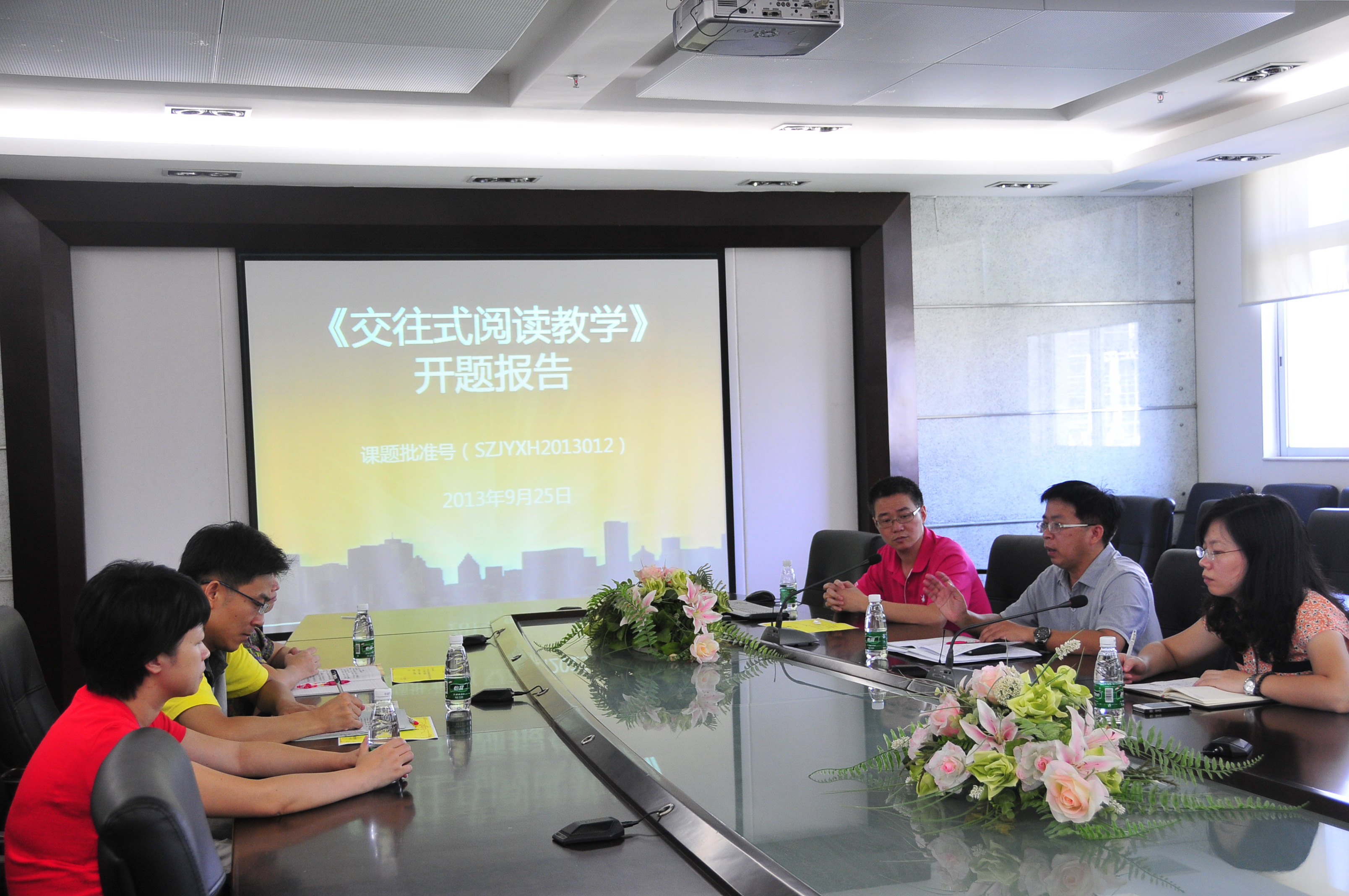 近期开题的市教育学会教育科学“十二五”规划2013年立项课题有丁雪芬老师主持的《针对学生差异的高中生物课分层教学研究与实践》(课题批准号:SZJYXH2013013)、高中学生处主持的《广东特色学校德育创新发展模式研究》(课题批准号:SZJYXH2013003)、羊巨波老师主持的《论交往式阅读教学》(课题批准号:SZJYXH2013012)、李刚老师主持的《课堂教学艺术与语文美育》(课题批准号:SZJYXH2013010)、陈箐老师主持的《高中历史课堂教师知识管理的行动研究》(课题批准号:SZJYXH2013004)等。每个课题都体现出了科研与教育教学实际密切结合的特点,吸引了科组或部门内外不同专业的老师参与合作。