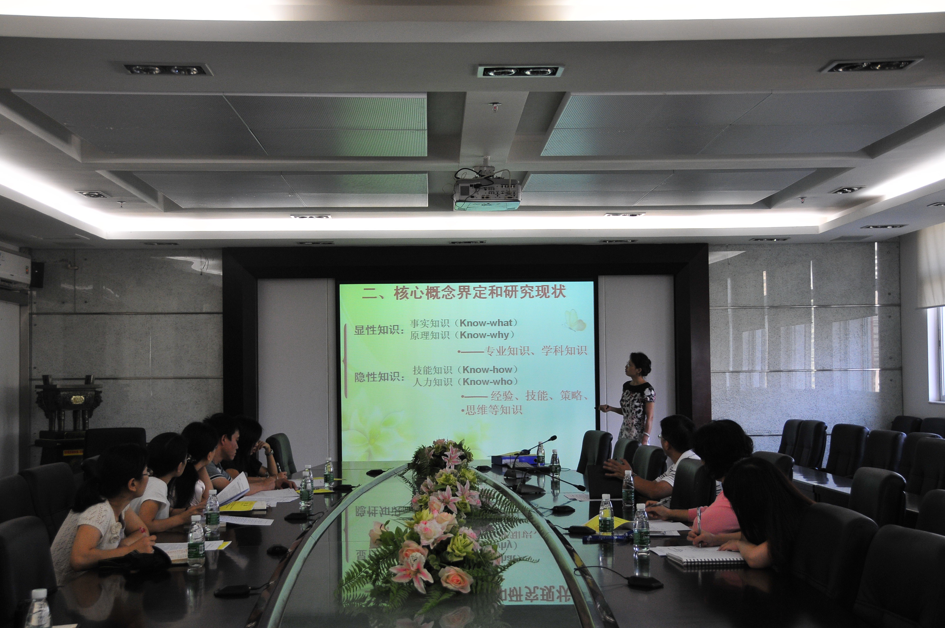 开题会上,课题主持人汇报了本课题的研究背景、研究现状、研究意义、研究目标,结合研究内容和教学实际对研究过程中的人员分工和阶段性任务作了安排。其中丁雪芬老师的《针对学生差异的高中生物课分层教学研究与实践》主要通过对个案、群体的研究和分层教学策略的实施,在科组教师间共同构建教学手段和方法,探索具有本校特色的高中生物课堂分层教学的有效途径;高中学生处主持的《广东特色学校德育创新发展模式研究》力求探索出更加科学有效的德育教育方法和途径、提高德育的实效性以适应教育教学形势及未来社会的发展,更好的为教学质量服务,进一步丰富学校德育创新及德育改革等方面的理论;羊巨波老师的《论交往式阅读教学》针对目前高中语文阅读教学存在比较严重的主体性缺失、人文性缺失的病理性现象探索构建多主体、多层次,多角度的立体化交往式的阅读网络状态;李刚老师的《课堂教学艺术与语文美育》从青少年成长、时代和语文教学本身的需要出发,追求语文教学中美育的理想境界,促进教师和学生的终生幸福感;陈箐老师的《高中历史课堂教师知识管理的行动研究》着眼于在教学行动中研究、探索历史教师进行知识管理的方法、策略,通过显性知识系统化、隐性知识显性化促进教师的知识增值和实践智慧,从而促进教与学方式的变革,推动有效教学的实现。