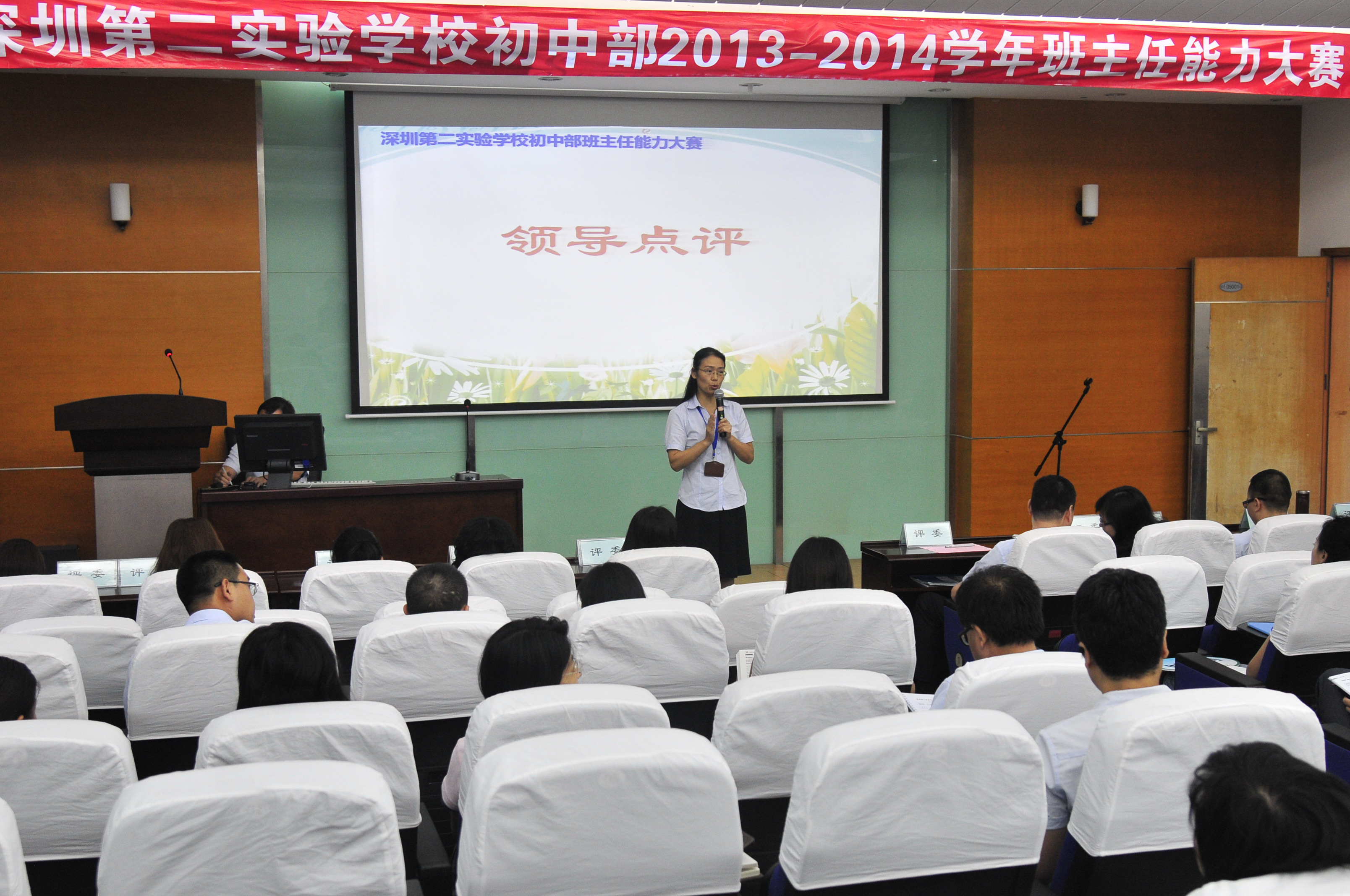 比赛结束后,李雅萍副校长就此次班主任能力大赛进行点评,李校长从赛前准备和比赛过程两方面谈了个人的看法及感受,充分肯定了选手们的比赛状态和精神面貌,希望通过班主任大赛这个平台,在初中部建立一支强大的班主任队伍,把我校的德育工作做得扎扎实实,打造出我校亮丽的德育品牌。