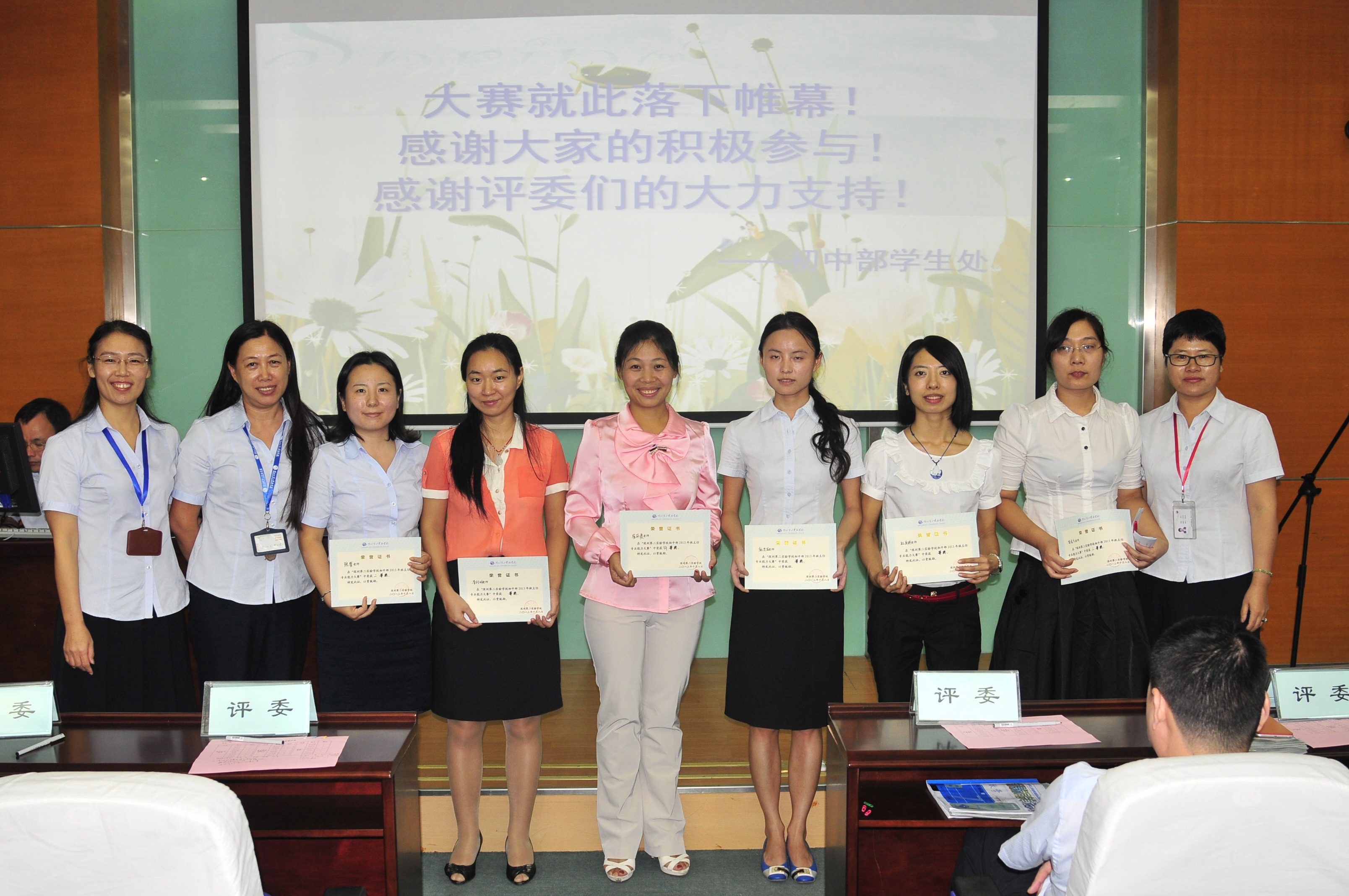 最后,初中学生处主任吴凡宣读比赛结果,获得特等奖的是崔丽霞老师,一等奖的是李玲玲和庞丕石老师,优秀奖的是张皙、孙美琪和苗宝久老师。2013年初中部班主任能力大赛圆满结束!