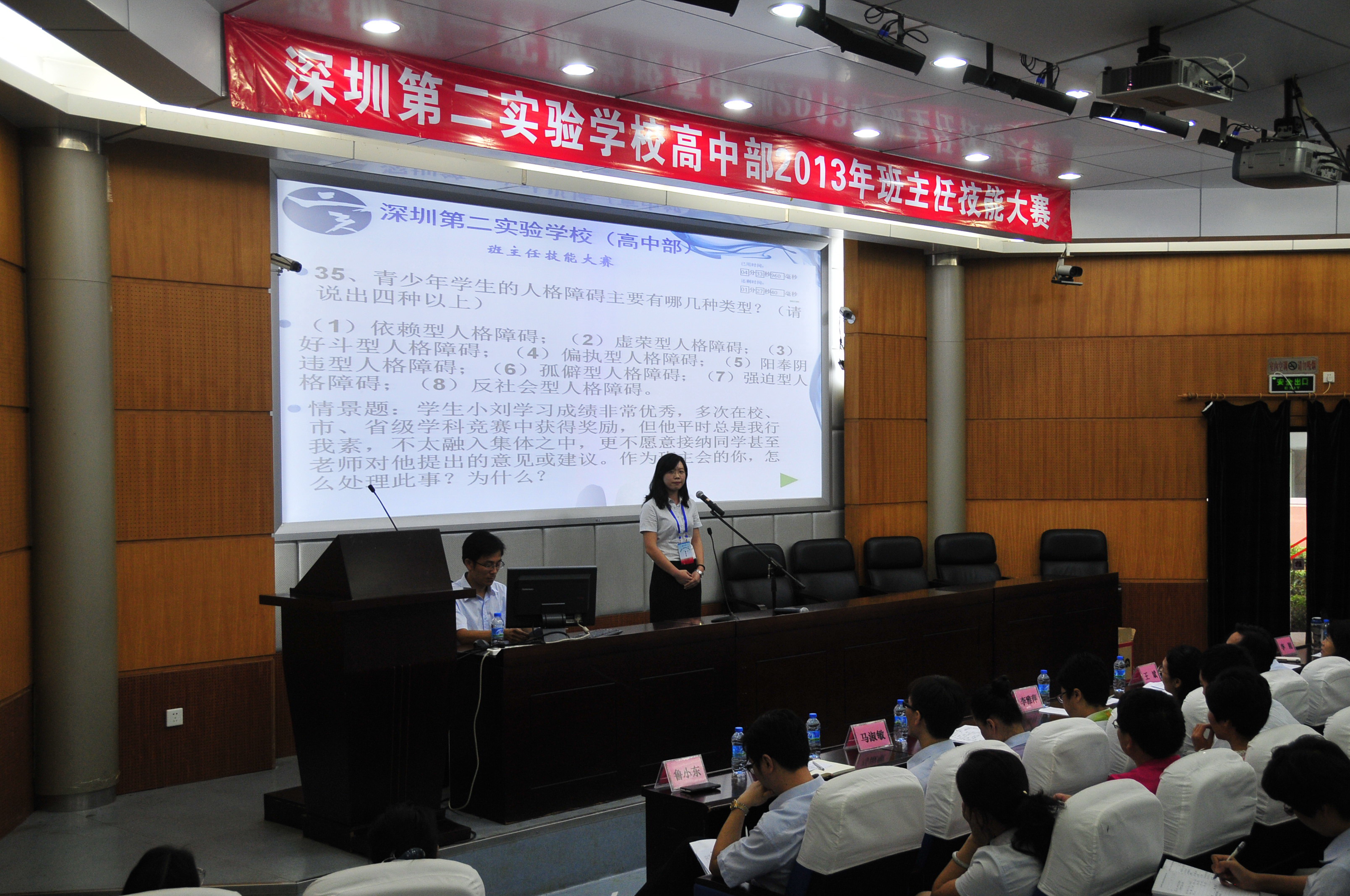 经过各年级组的选拔和推荐,本次班主任大赛的参赛选手为游云峰、丁雪芬、王思葳、唐露、王雅强、杨云霞 6位老师。两部学生工作相关领导和优秀班主任代表组成了阵容强大的评委团、高中部所有班主任和部分教师现场观赛。
