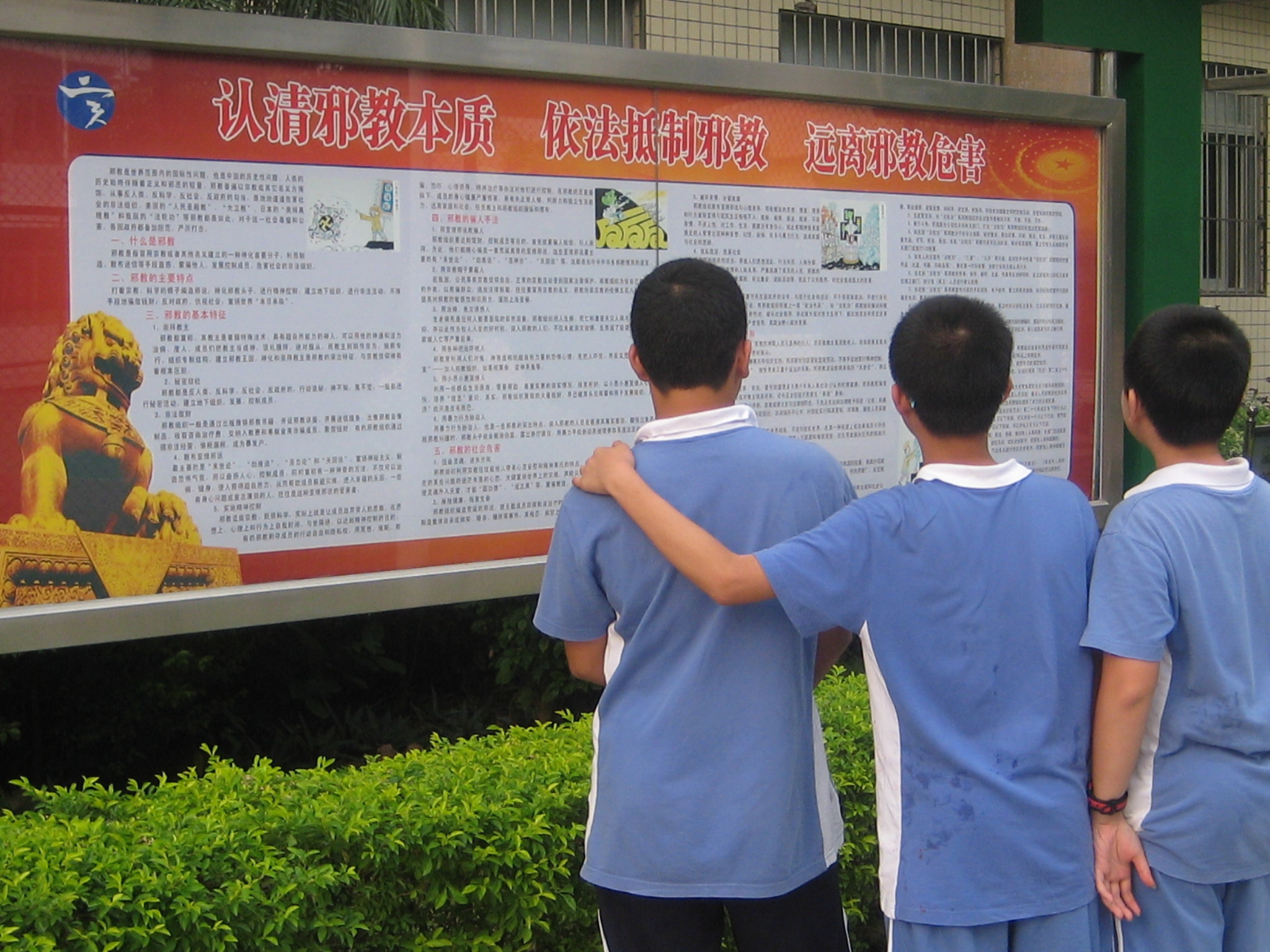 我校初一、初二、高一、高二4个年级利用信息技术课时间,组织学生登陆网站参加反邪教法制知识竞赛,参赛率达100%;学校党委通知各支部党员利用课余时间参加知识竞赛,党员参赛率100%。同时,学校制作了反邪教法制宣传橱窗,介绍邪教的特征、危害、国家法律对反邪教的规定以及反邪教的措施等,对全校师生进行反邪教教育。