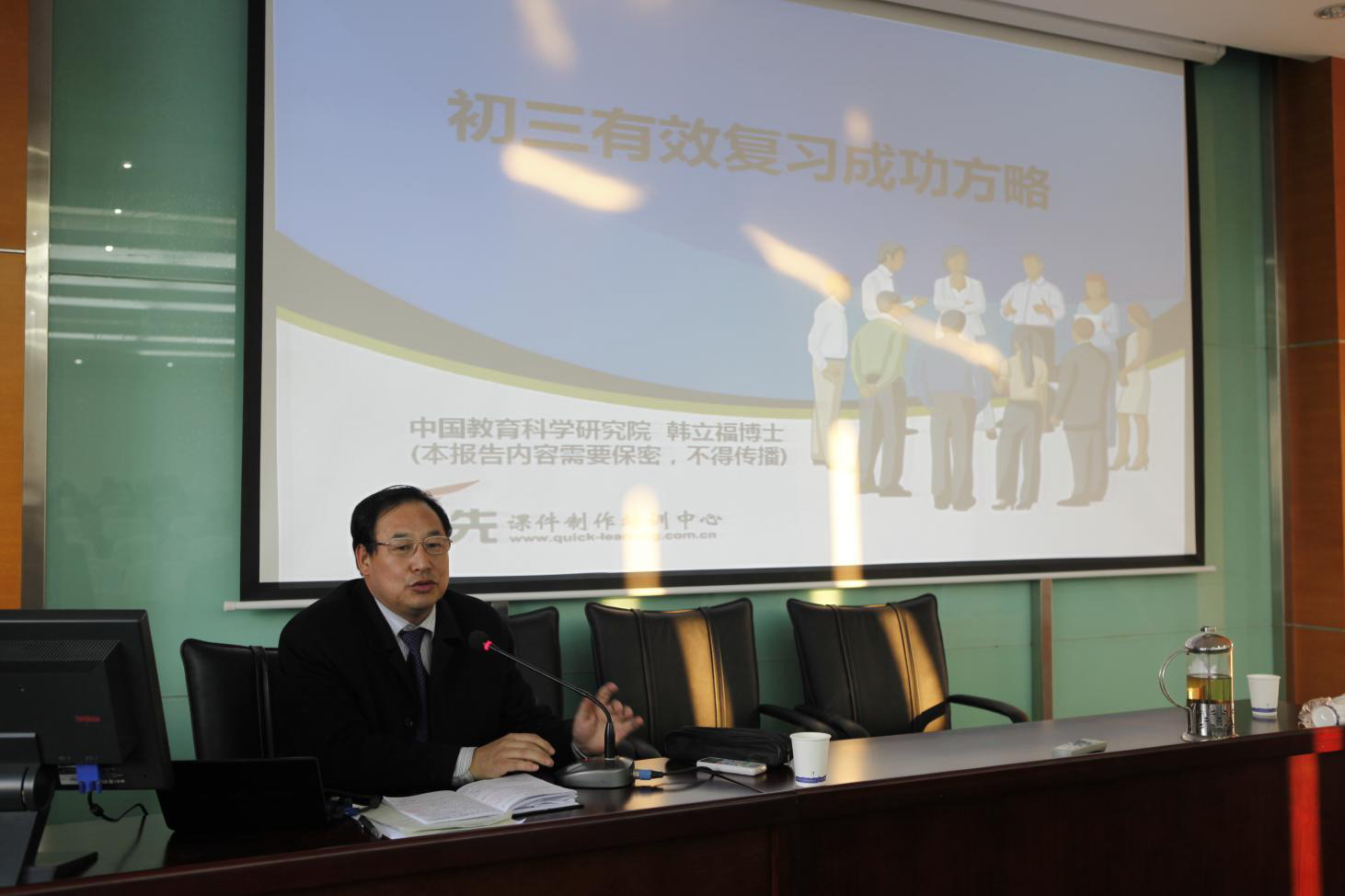 12月19-20日,韩立福教授应邀来校进行有效教学现场指导。两天里,韩教授通过走动观课、现场指导结合定点全程观课的方式,从总体上了解了我校现阶段有效教学的开展情况,并与老师们进行了座谈。