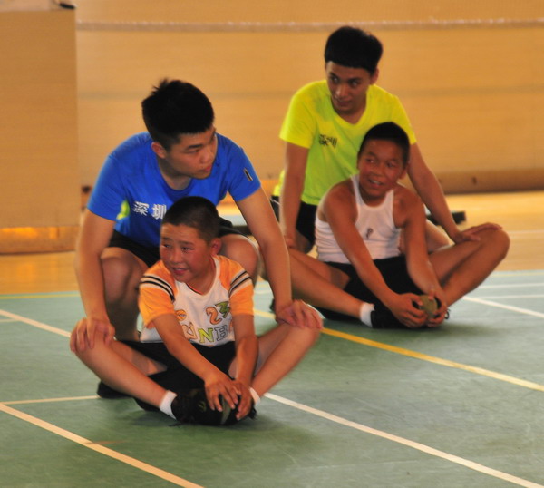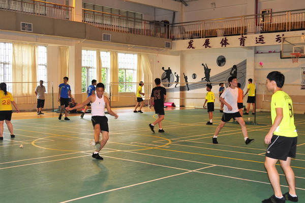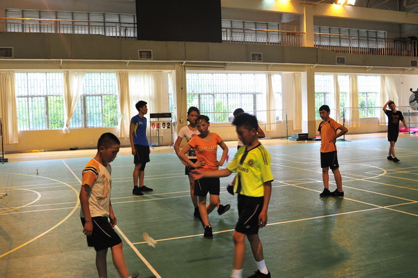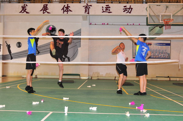 6月13日上午,我校举行了隆重的欢迎会,赵立校长、郑联采副校长等领导以及我校毽球队师生参会,热烈欢迎蒙古毽球队的到来。从当天下午开始,在我校毽球队蔡金玉教练的指导下,校毽球队员开始一对一、手把手地对蒙古队员进行培训,开展每天5个小时的超强训练。