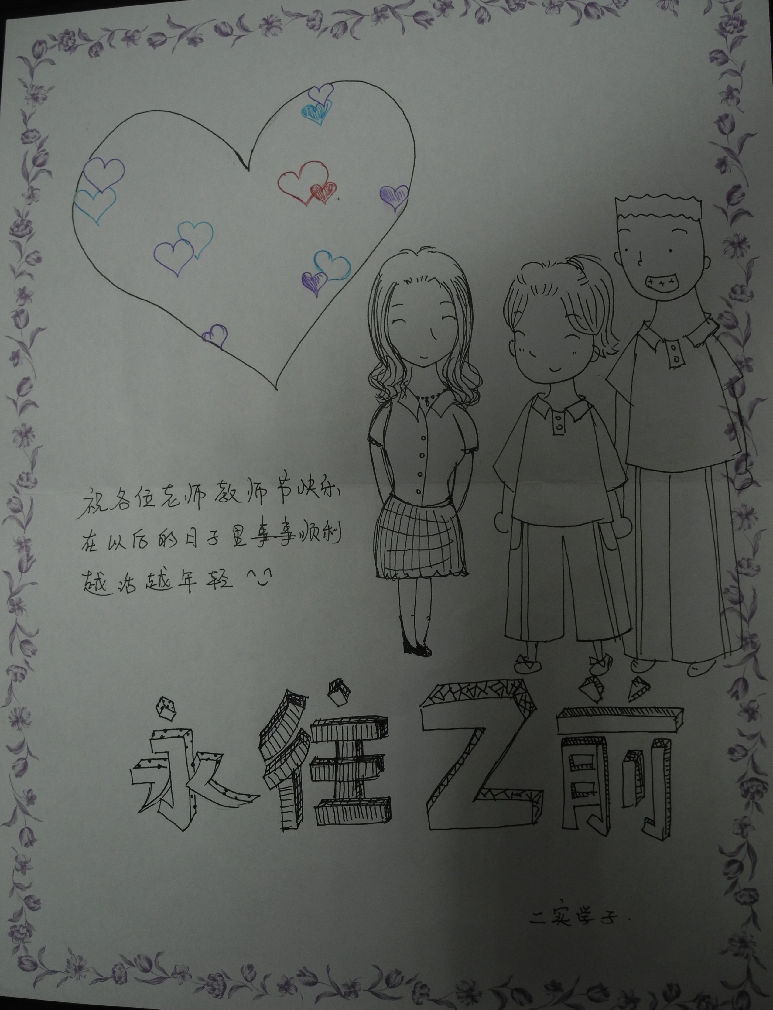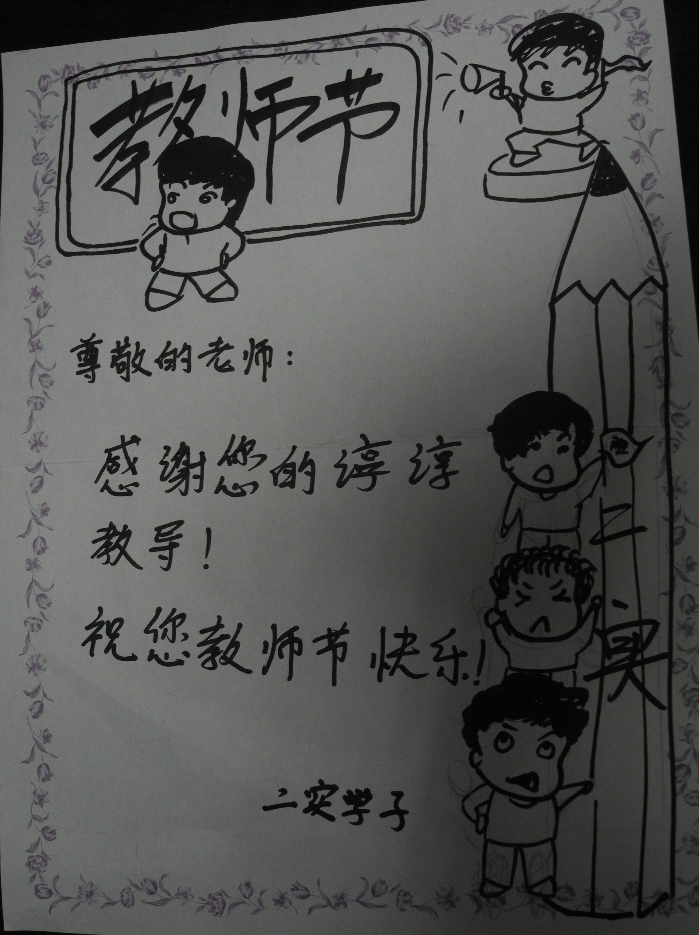 在第二实验学校,同学们自己制作贺卡为老师庆祝教师节已经成为一个传统,节俭中见真情,带给老师们节日的快乐。