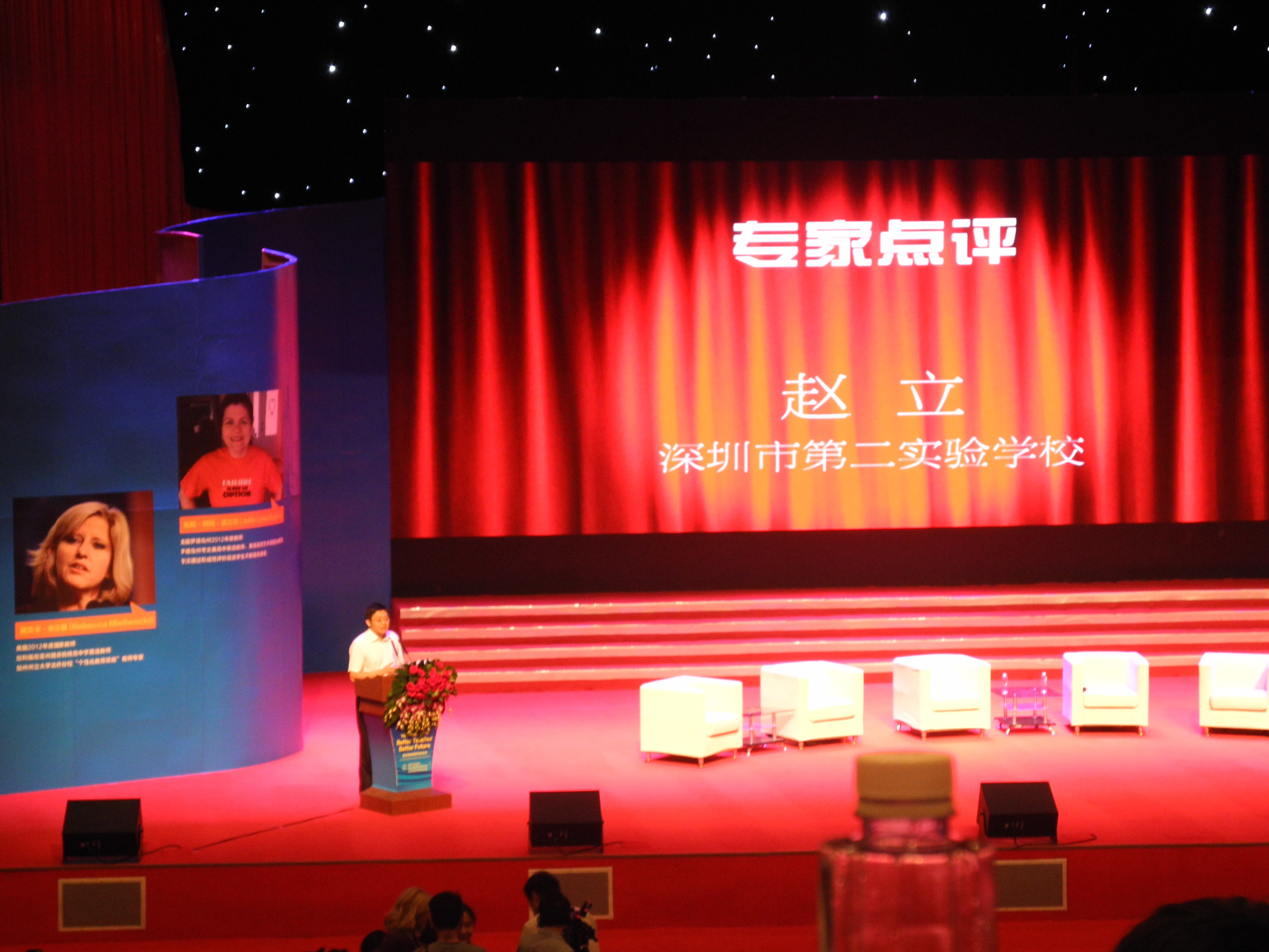 我校赵立校长应邀对上午的议题作十五分钟的专家点评。赵立校长在点评中认为,中美两国虽然文化背景存在差异,但是在教育方面存在很多共通之处,在好老师的评价标准上都倡导对学生充满期待,宽容和信任学生,能够关注到学生每天的成长;深圳的老师们也在探索以灵活多样的教学方法构建高效课堂、实行大数据下的过程性综合评价、在尊重个体差异的基础上促进每个学生潜能的发挥,每个老师都有很多的方法和体会。结合论坛的内容,赵立校长提出三个观点:一是激发学生比教会学生更重要,激发求知欲和好奇心是学会的第一步,激发潜在的能力更有利于学生的长远发展;二是关注学生的成长过程比关注结果更重要,要在对成长过程的持续关注中敏锐觉察学生的变化,适时修正教育方法,以更有针对性的策略促进学生的个性化发展;三是建立良好的师生关系非常重要,不能单方面要求学生对老师的尊重,也应倡导教师对学生的尊重,良好的教学效果往往建立在良好的师生关系基础之上,建立尊重、平等、民主、友好、互相信任的师生关系更有利于学生潜能的激发。精彩的点评好似画龙点睛,引领与会者更深层次地体会论坛的主旨,在中美教育对话中得到更深刻的启迪。赵校长的智慧见解获得了热烈的掌声和广泛的好评。