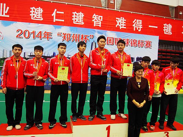 2014年全国毽球锦标赛,于10月30日在郑州市职业技术学院体育馆降下帷幕。来自全国各地的33支代表队,303名运动员经过5天282场紧张激烈的争夺排定名次。我校代表队经过十六场顽强拼搏、过关斩将,获得了男子团体亚军亚军、男子双人亚军、混合双人季军、女子团体第三名、女子双人第四名以及花毽比赛的规定套路和自选套路的两个季军名的好成绩。