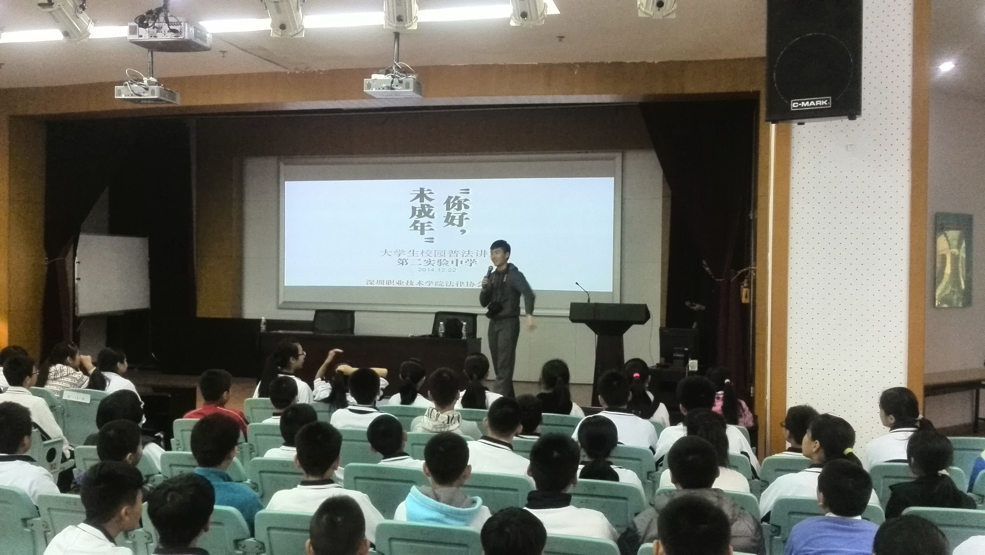 12月22日下午,我校邀请深圳职业技术学院“大学生普法宣讲团”到初中部开展普法宣讲活动。此次宣讲是我校法制宣传月系列活动之一。