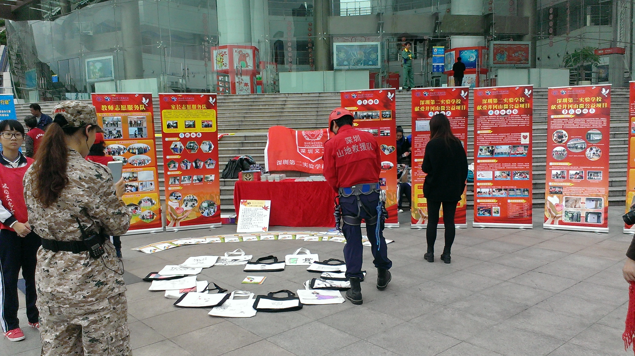 3月5日,在初中团委书记李雪亮老师、深圳“五星级义工”田贵昆老师的带领下,我校参加第十届“深圳义工节”暨“3.5学雷锋纪念日”志愿服务优秀项目交流活动。上午10点半,我校义工队在深圳市少年宫西广场展台,向市民们展示并介绍近年来我校志愿服的特色和成果。现场,学生和家长义工手工制作的纸花深受市民喜爱,引来众多市民驻足了解我校的公益项目,并纷纷献出爱心。