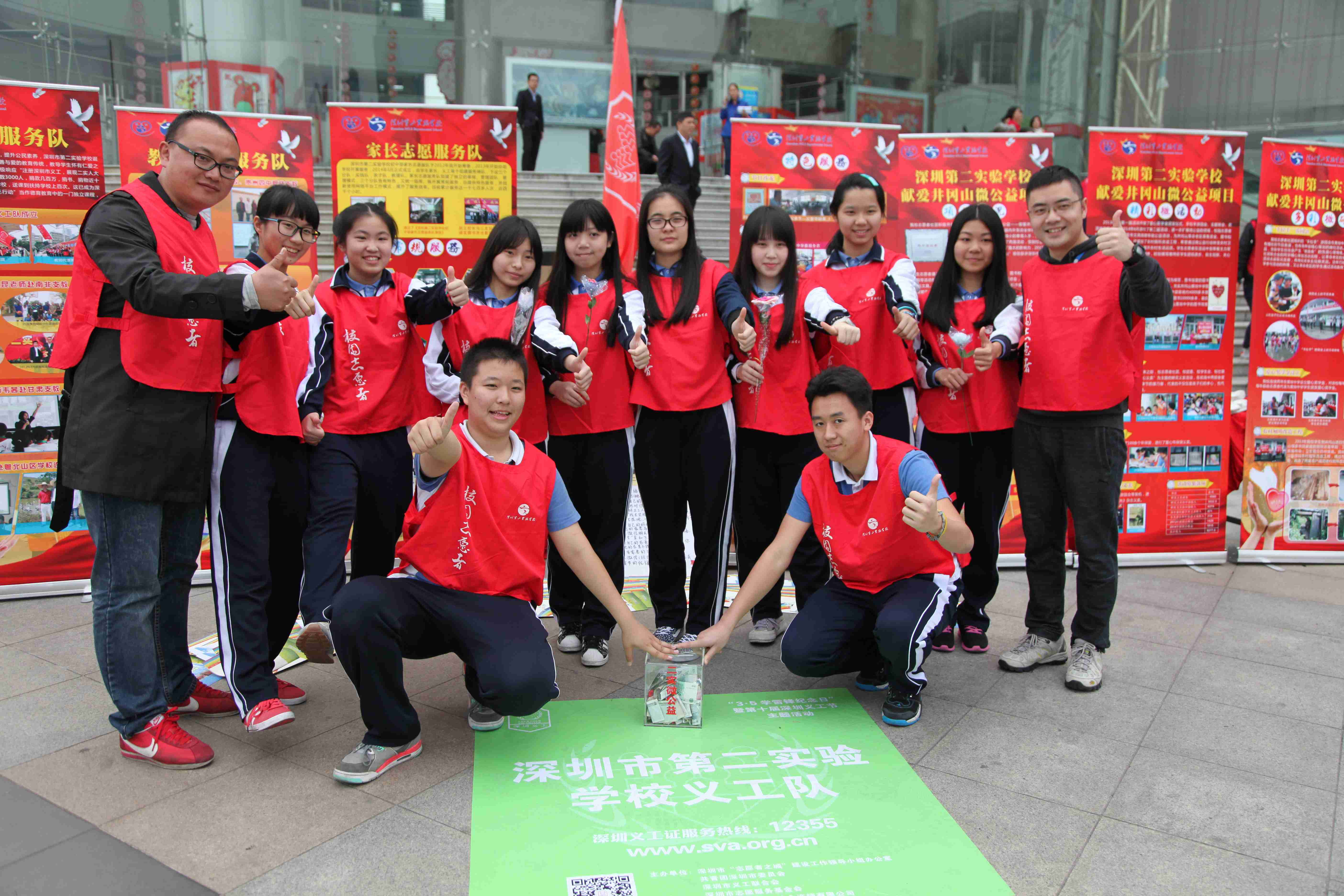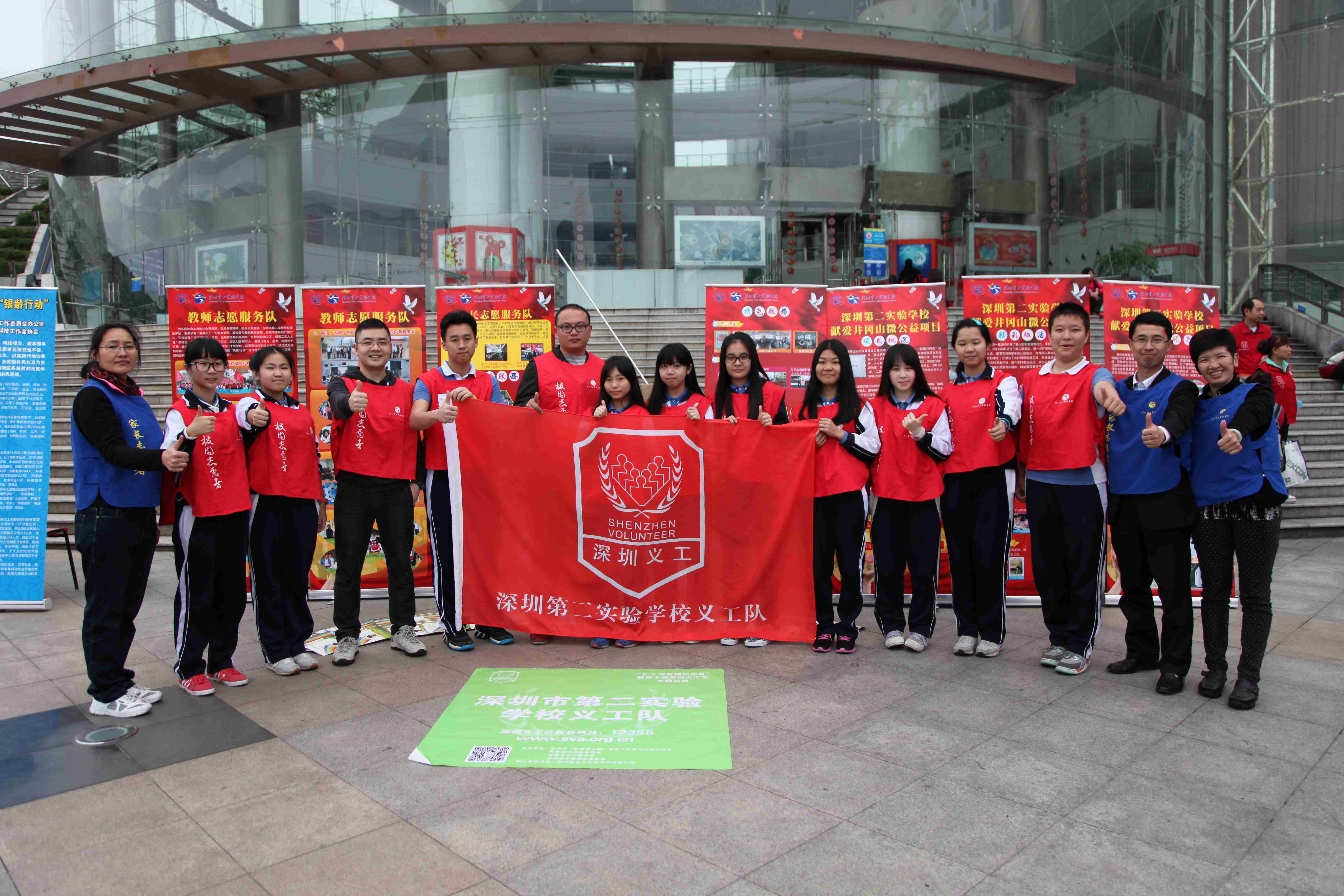 深圳第二实验学校义工队成立于2005年,由学生义工、家长义工、教师义工共同组成,先后有五千多人参与义工队伍,现有注册义工600多人。在扎根校园、服务社区的原则基础上,秉承“环保、公益、帮扶、接力”的理念,组织各类义工志愿服务活动近两千余次,并将志愿者队伍建设与优质志愿服务项目紧密结合,形成具有二实特色的志愿服务体系于模式。