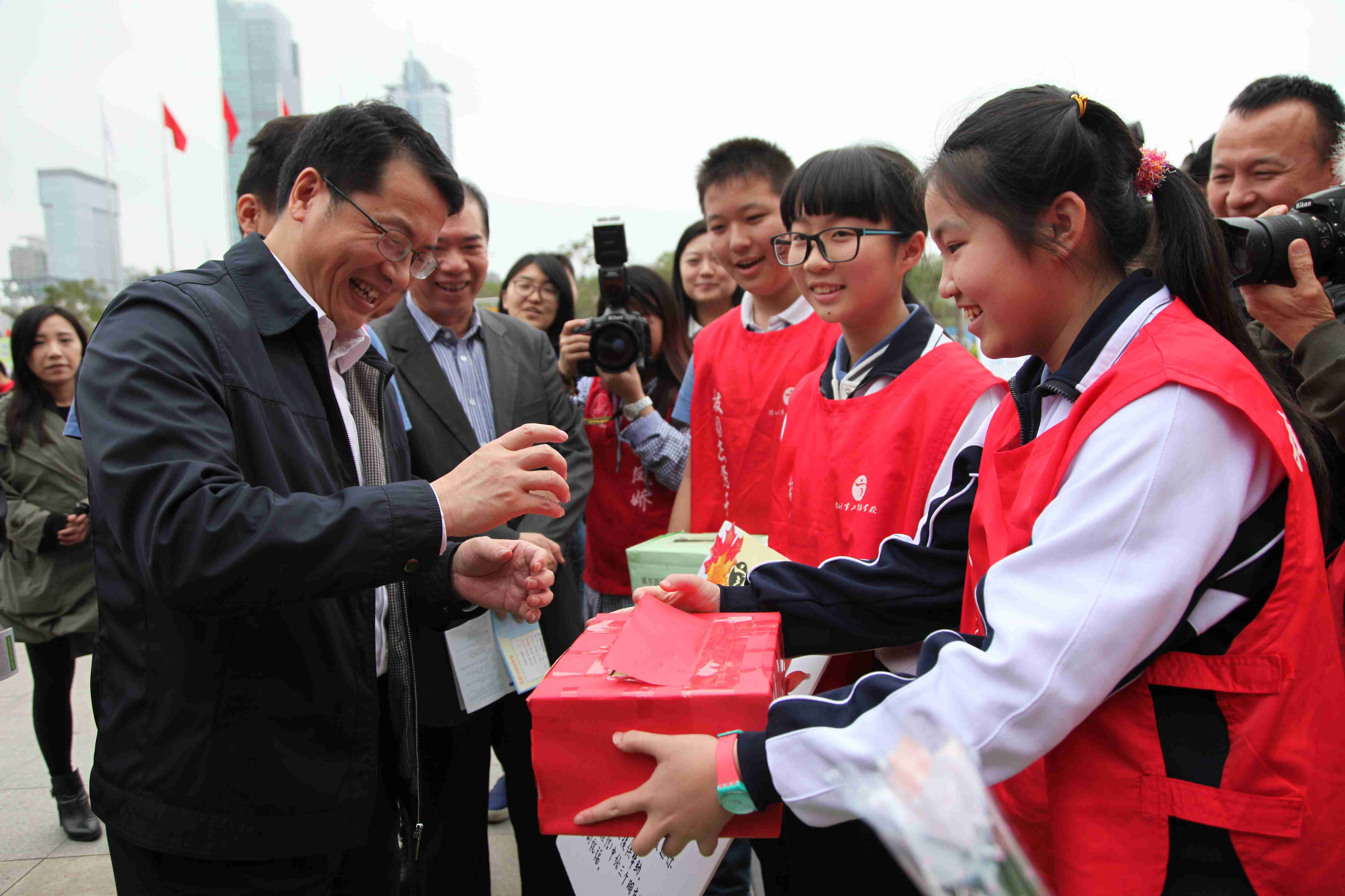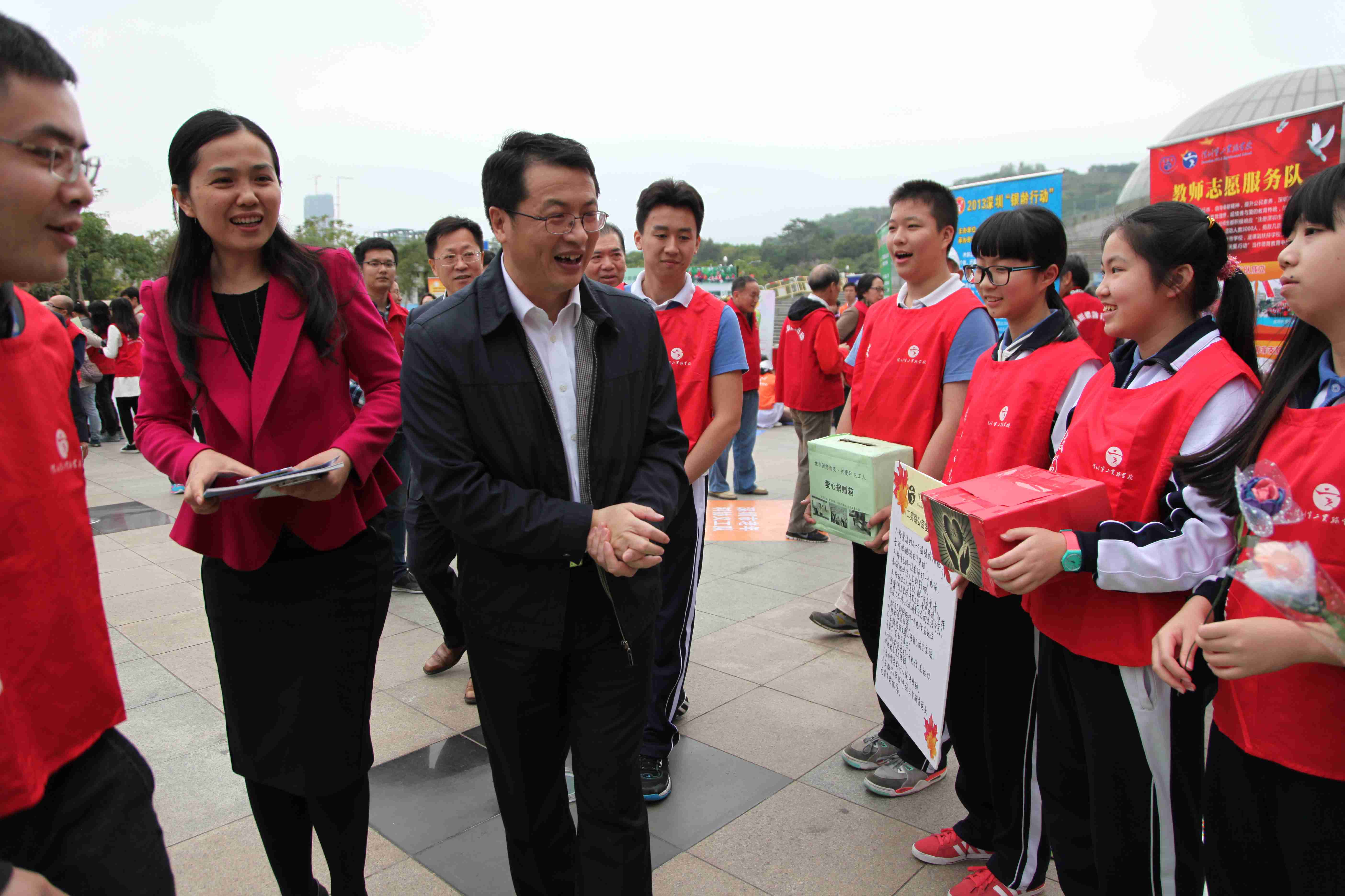 交流活动持续到下午3点。期间,市委常委、组织部长张虎,原市政协副主席、市志愿服务基金会主席廖军文,团市委书记蔡颖、市委宣传部副部长陈金海、市关爱办副主任陈励观摩了优秀志愿服务项目展。张虎部长在我校志愿服务项目展区前,详细询问了我校义工队的构成及学生参与志愿服务的感受,参与体验了现场微公益爱心接力互动游戏,并对我校全员参与志愿服务队表示赞许。