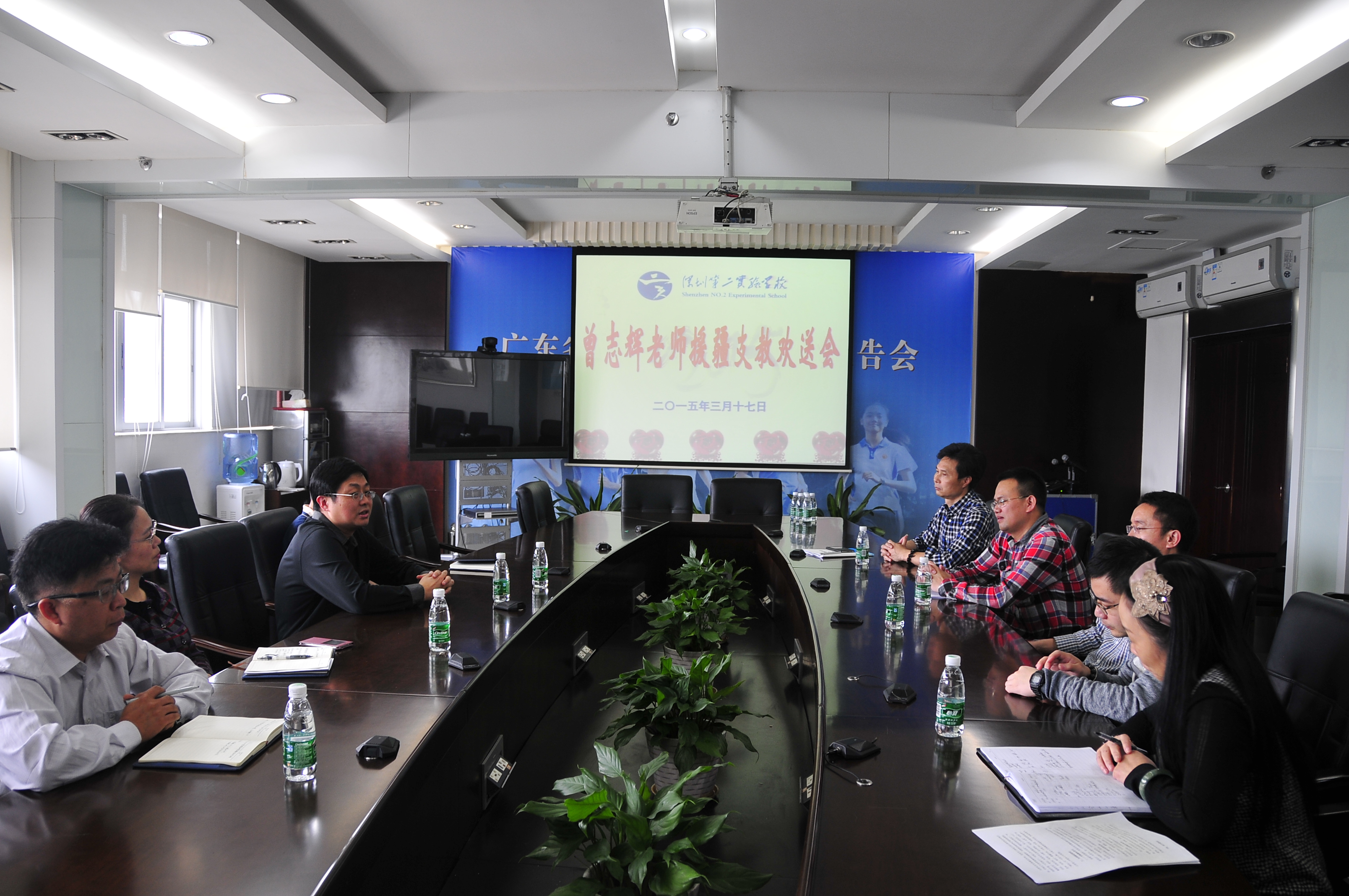 3月17日上午,校领导及同事在高中部11楼会议室与曾志辉老师座谈,欢送曾老师援疆支教。座谈会上,赵立校长从国家战略、民族政策的层面阐述了援疆支教工作的重要性,从历史原因和现实环境的角度分析了援疆支教工作的艰巨性,他对曾老师连续三次申请援疆支教的决定和志向表示敬佩,也对曾老师“舍小家为大家”的奉献精神表达崇高的敬意。与会领导和同事们纷纷表示,曾老师此次援疆支教,学校和团队就是曾老师坚强的后盾,大家会尽最大可能决绝曾老师此行的后顾之忧,稳固大后方。