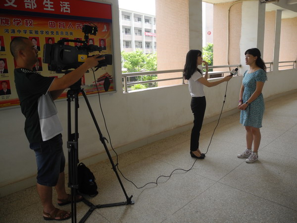 在随后的交流总结会上,张定红校长感谢我校在此次交流中给予了很多实际性的指导,对于新学年将开办高中的“河实”,我校此行送去了及时的指导和有力的支持,他希望两校紧密联系,带动河源中学实验学校进一步发展。赵立校长感谢河源中学实验学校为本次暑期学习会提供的大力支持,与河源中学实验学校的结对帮扶既是我校的责任与使命,也给予了我们很好的学习机会,两校将在德育课程、培养通道、文化建设、学校管理和特色发展等方面共同探索,互相促进,并将常态性合作交流纳入新学年工作计划之中,细化环节,责任到人,有效落实。黄东明副局长肯定本次学习会内容充实,既有感性认识,也有理性思考,是一次高质量的培训,尤其是在新学年即将开始之际,二实作为此前多次来到河源扎实开展对口帮扶工作的学校,又最早来到河源中学实验学校进行交流,是对深圳-河源对口帮扶工作的极大支持,希望两校同为实验型学校,继续携手创新,共同进步,为深圳、河源教育的共同发展做出贡献。河源电视台对交流活动进行了现场跟踪报道,对两校干部进行了采访。