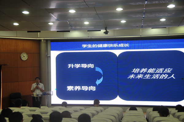 8月25日,赵立校长分两部以“凝心聚力建设新二实”为主题作新学年工作动员培训。赵立校长指出,面对社会转型和教育改革的深化,新的学年我们要着力建设以关注人的成长、拥有完善的办学机制和优越的办学条件为特征的“新二实”。他提出,在教育教学工作中,我们应该将学生的健康快乐成长和教师的专业幸福成长有机统一起来,要以“素养导向”代替“升学导向”,着力培养能适应未来生活的人,同时也促使自我由“学科型教师”转变为不可替代的“教育型教师”;在机制建设方面,我们将着力构建重大事项决策制度、重要事项通报制度、领导与教职工的通报制度,让每个二实人都可以参与到学校工作中来,共同建设自己的精神家园;在办学条件提升方面,我们将启动初中部整体改造工程、高中部文体楼建设工程以及高中部学生宿舍改造工程,突破客观办学条件的制约,为师生提供更多的发展空间和平台。结合上学年教师队伍中出现的一些现象,赵校长强调“爱岗敬业”和“为人师表”两方面的要求,希望全体教职员工在工作中服从学校工作安排,认真履行岗位职责,有清晰的职业发展规划,强化团队意识与合作精神,保持终身学习;面对学生要尊重学生个体差异,尊重学生独立人格,乐观向上有亲和力,严规范健康,举止文明礼貌,善于自我调节情绪,为学生做好表率。最后,赵立校长号召全体教职工肩负教育使命,踏准时代节奏,凝聚全体师生智慧,把学校建设成为二实人的精神家园。赵立校长的培训凝聚了人心,鼓舞了士气,为新学年工作指明了努力的方向。